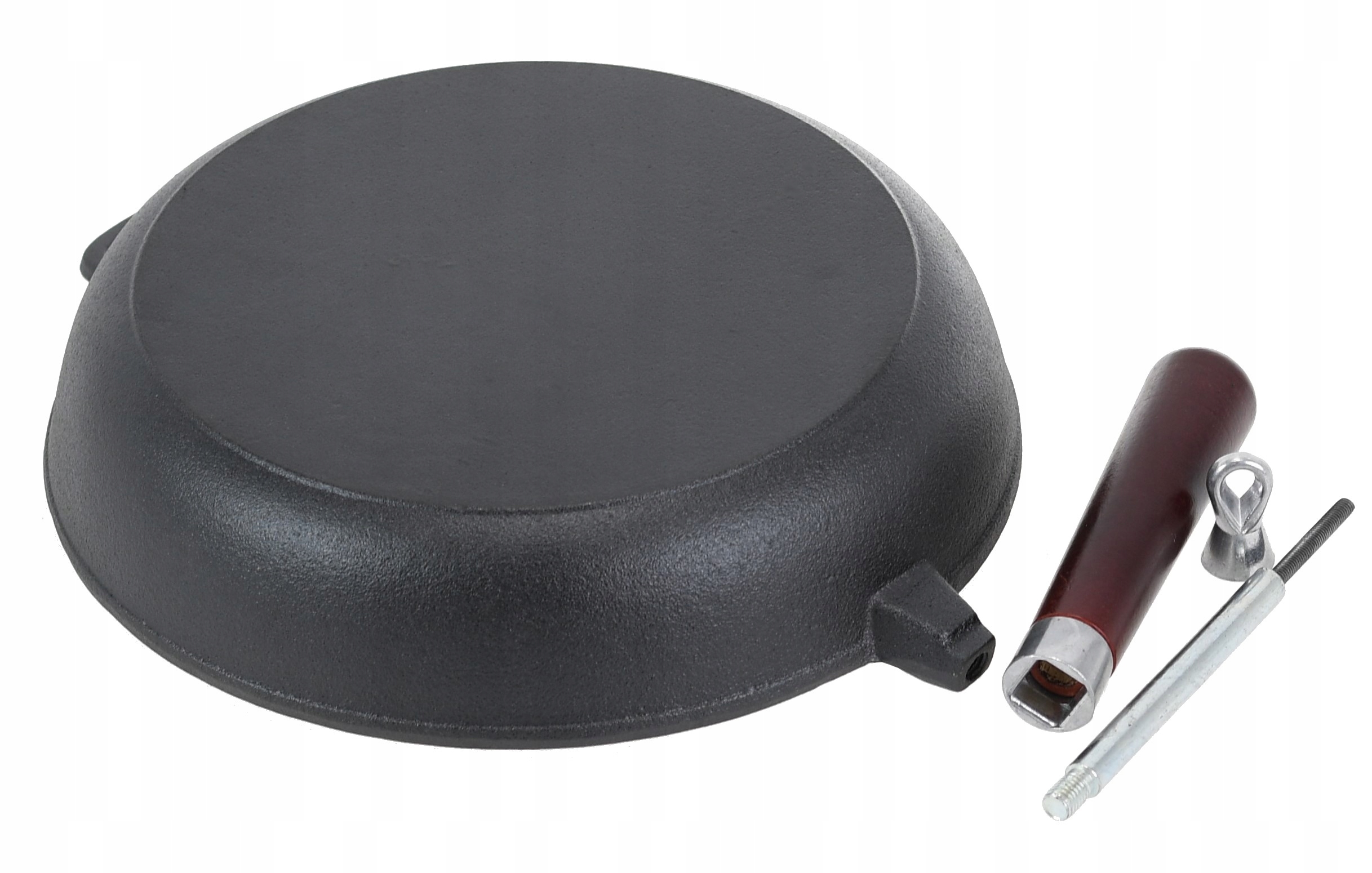 Тяжелая, массивная чугунная сковорода Ø 28 см с деревянной ручкой и крышкой h2>