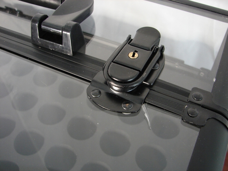 Верхняя часть кейса изготовлена из специального прозрачного оргстекла, что позволяет просматривать содержимое внутренностей кейса, не открывая его!