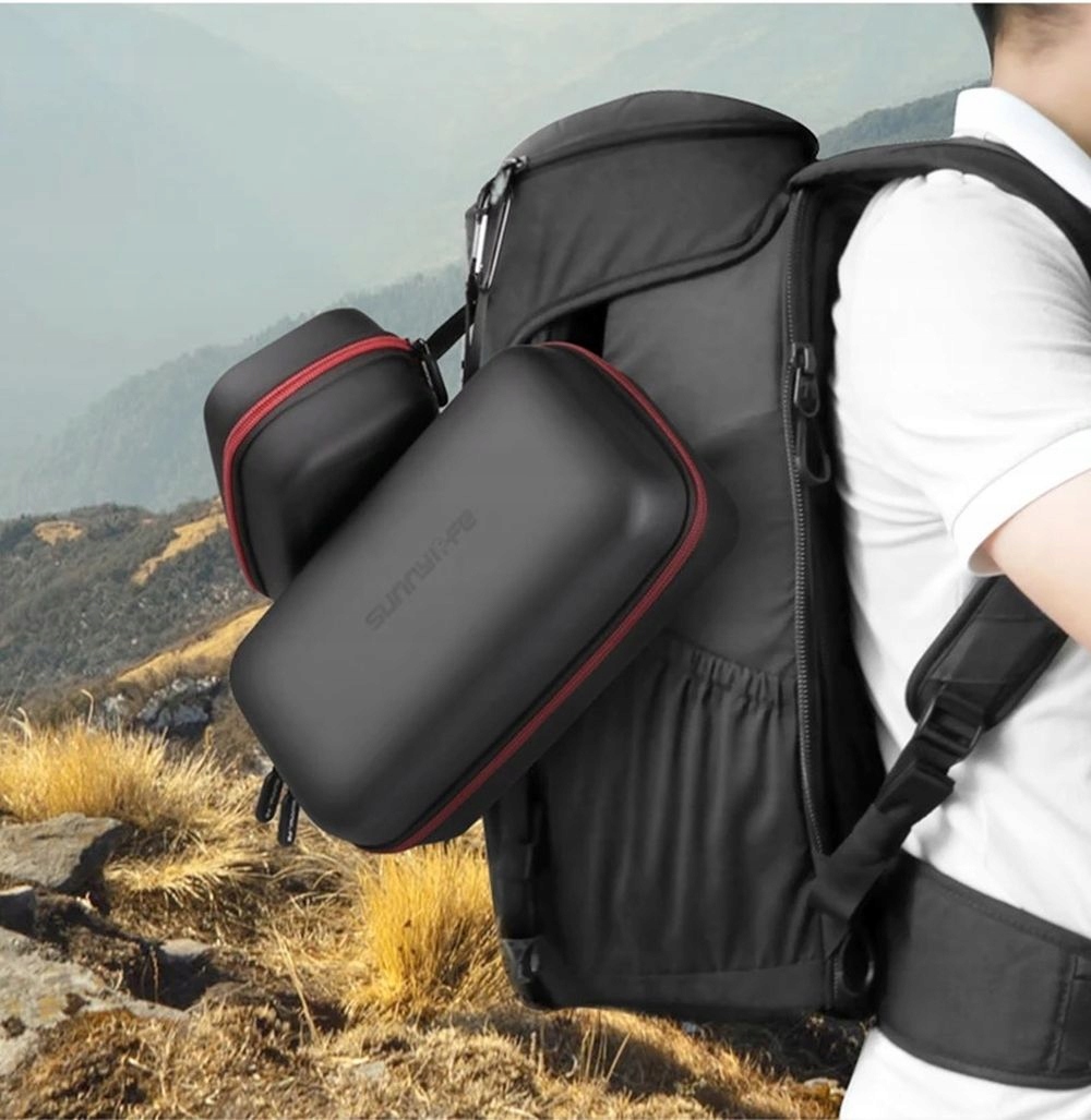 Дрон и контроллер имеют ухо в замке, что позволяет прикрепить, например, к рюкзак во время путешествия. Кроме того, два карабинера прикреплены к делу.