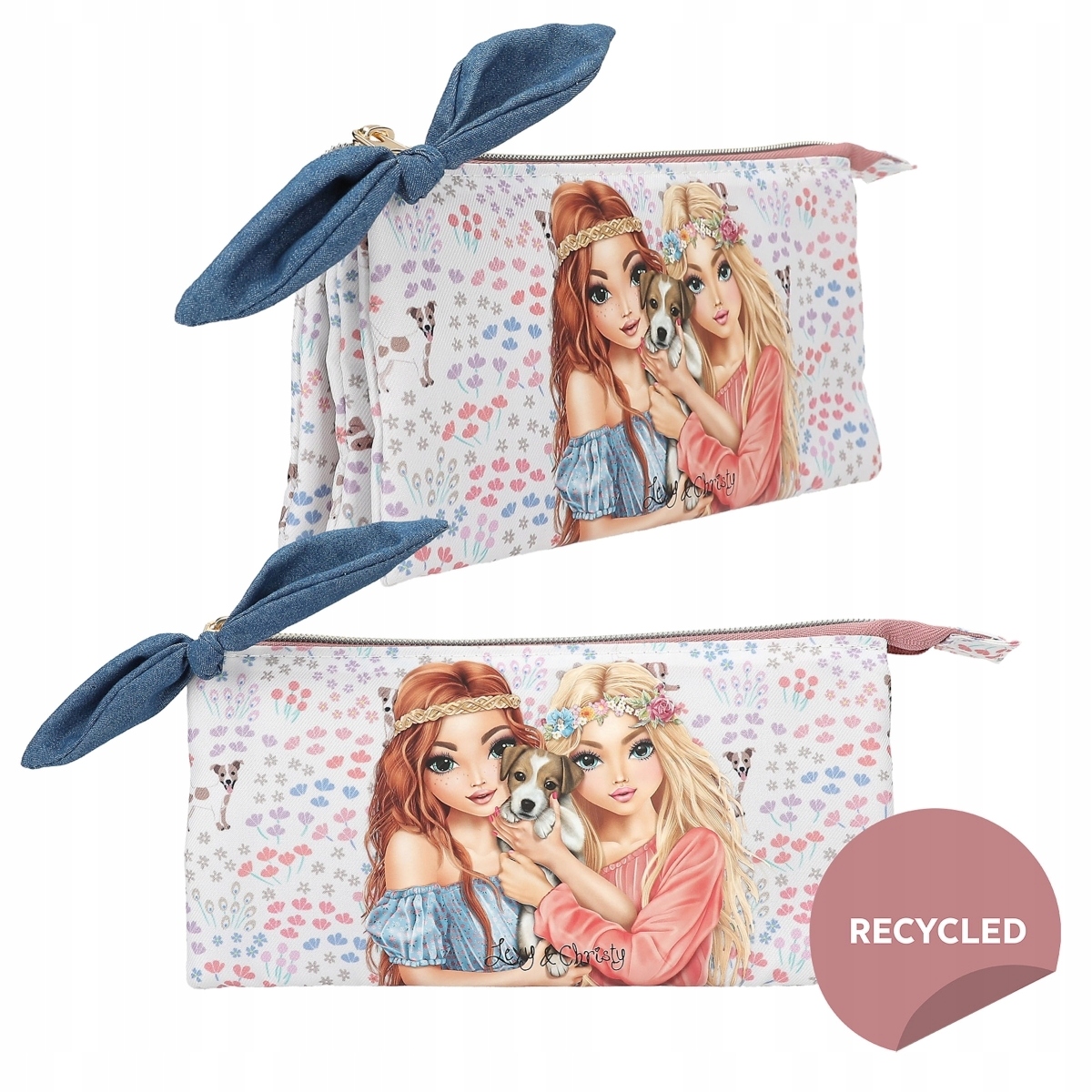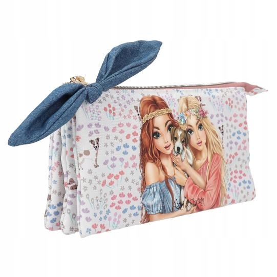 Другие преимущества кремового карандаша Case Velo Fleur: Золотые замки, 3 отдельные отсеки, ржавые розовые детали и модный джинсовый джемпер.