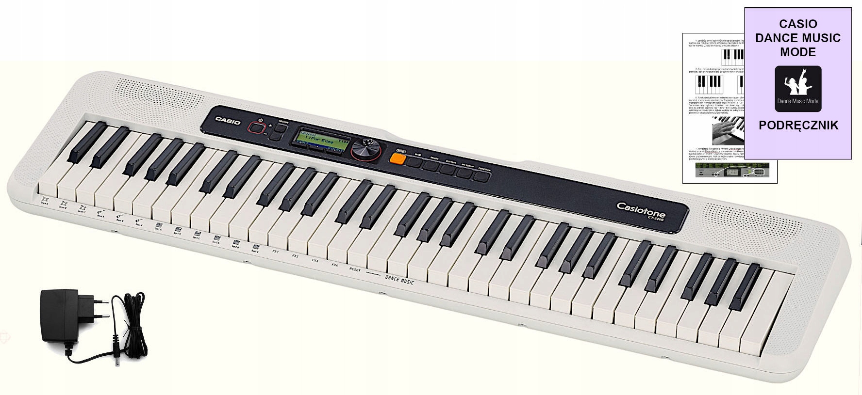 casio ct-s200 wh (белый) Стронное профилированное тело имеет удобную ручку, вес всего 3,3 кг. Невероятно компактный, удобный и легкий инструмент бескомпромиссно предлагает полноразмерную стандартную 5-октавную клавиатуру, 400 звуков и 77 стилей аккомпанемента и 50 ритмов танцевальной музыки со многими эффектами и функциями управления. USB -разъем обеспечивает сотрудничество с компьютером. Питание аккумулятора позволяет вам играть до 16 часов. Очень просто использовать инструмент, готовый к игре, где вы его принимаете