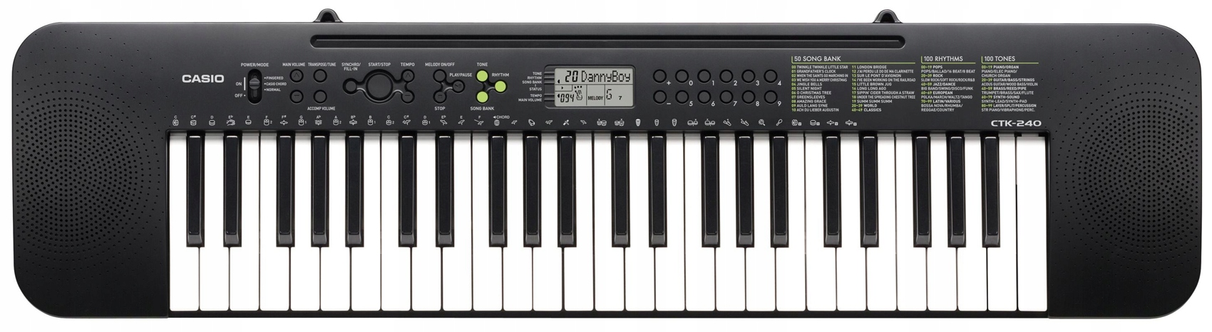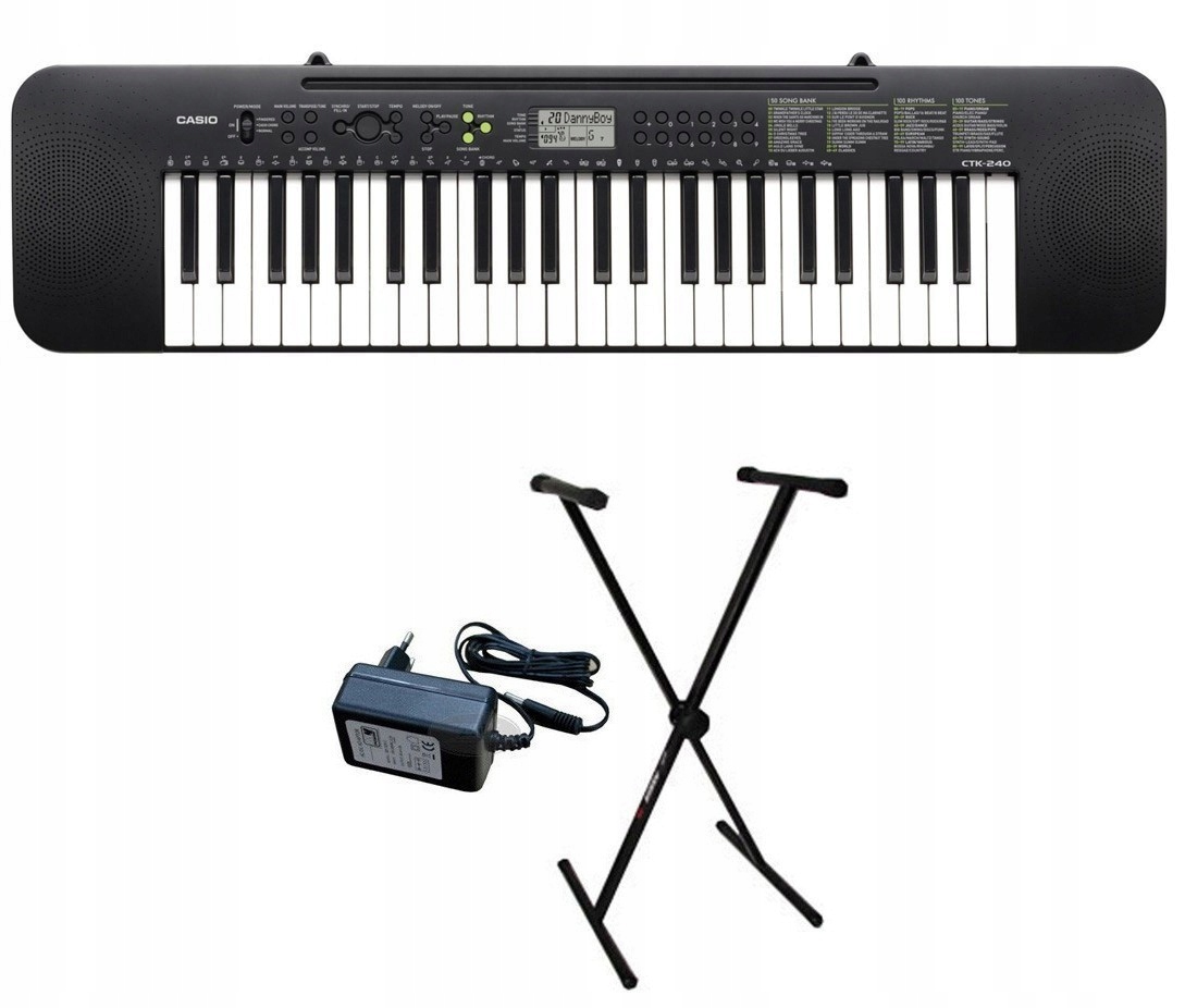Несмотря на то, что последняя модель Casio CTK-240 слишком велика, чтобы поместиться в школьный рюкзак, это идеальный инструмент для каждого молодого, будущего музыканта. Клавиатура имеет 49 полноразмерных клавиш и является идеальным инструментом для изучения нот и основ музыки. Богатство из 100 звуков различных инструментов, 100 ритмичных минусовок и 50 песен с возможностью обучения открывает широкий спектр возможностей и предоставляет пользователю возможность развивать свою музыкальность. Casio CTK-240 — уникальный инструмент в стильном тонком корпусе, доставляющий массу удовольствия от игры во время повседневного обучения.