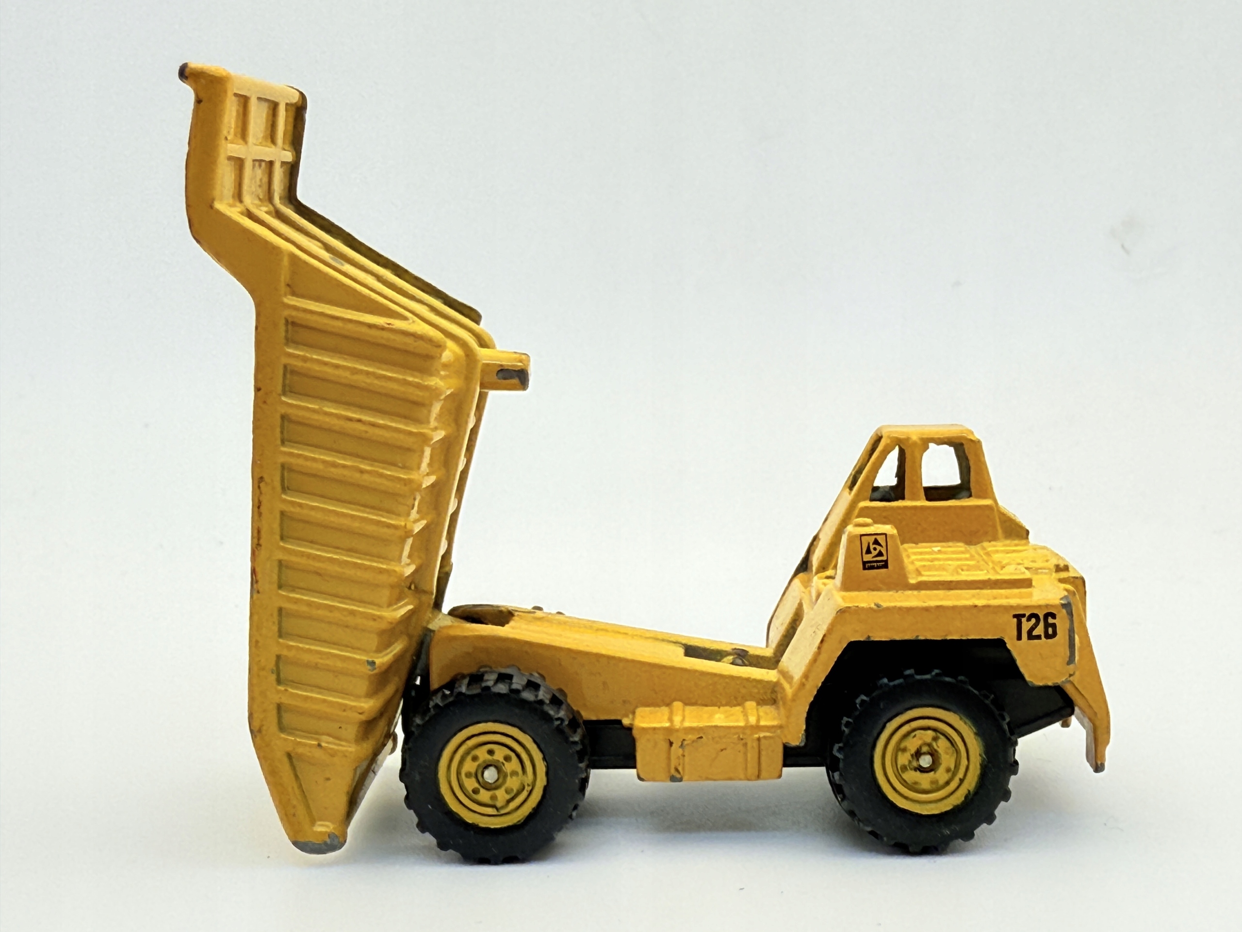 Эта модель будет полезна коллекционерам, интересующимся строительными машинами, а также тем, кто ценит функциональные элементы, такие как подъемный грузовой ящик. Его уникальность также подчеркивается номером T26 и металлической конструкцией, что может привлечь коллекционеров, ищущих солидные и реалистичные модели.