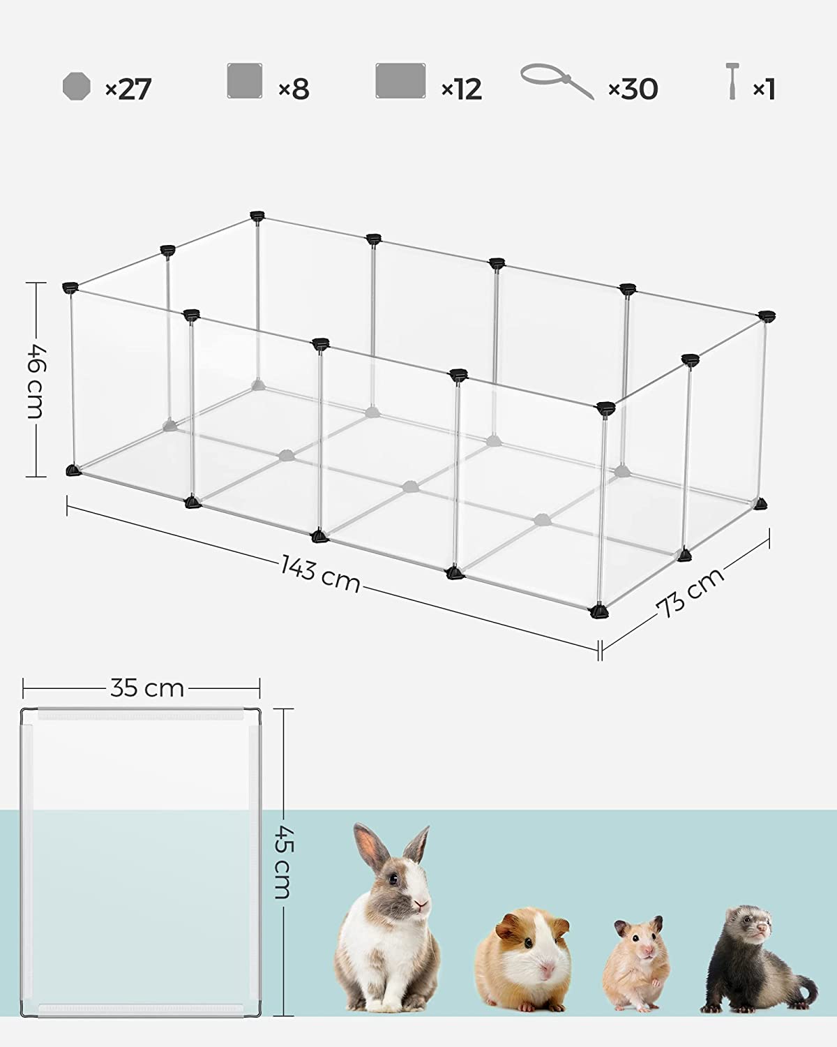 Входящие в комплект кабельные стяжки обеспечивают еще более плотное соединение всех пластиковых панелей манежа. Так что не беспокойтесь о том, что ваши маленькие питомцы наведут беспорядок в своем доме.