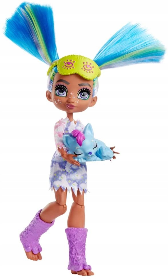 Красочные пещерные друзья устраивают свою первую вечеринку с ночевкой, и приглашены все! Внешний вид Куклы Телла сочетает в себе доисторические черты с самой модной одеждой и аксессуарами! У нее синие волосы, собранные в два хвостика и распущенные. Рост героини примерно 22 см, руки и ноги сгибаются, что позволяет легко принимать любое положение.