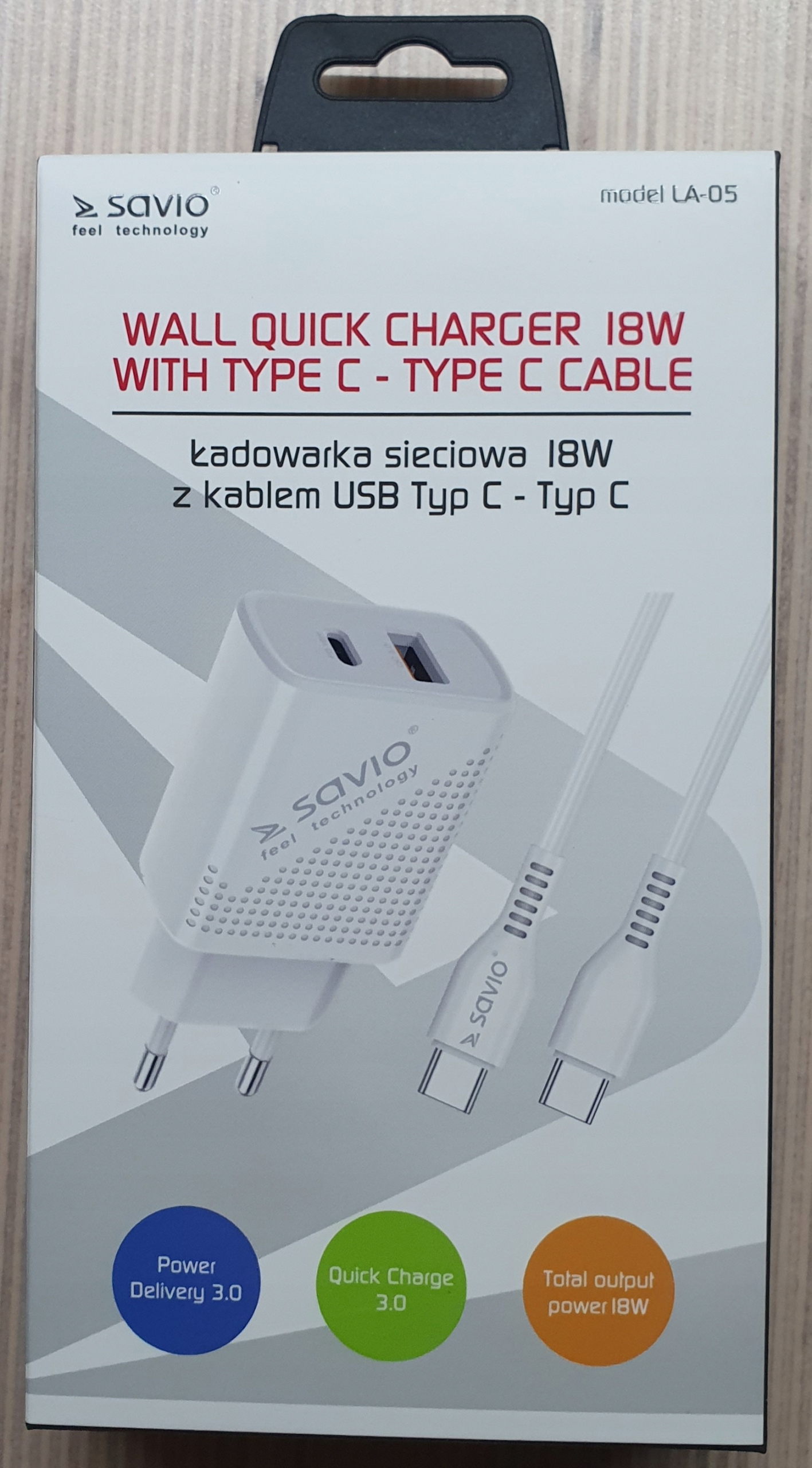 Savio Charger + TYP-C USB-C 18W PD 3.0 Кабель