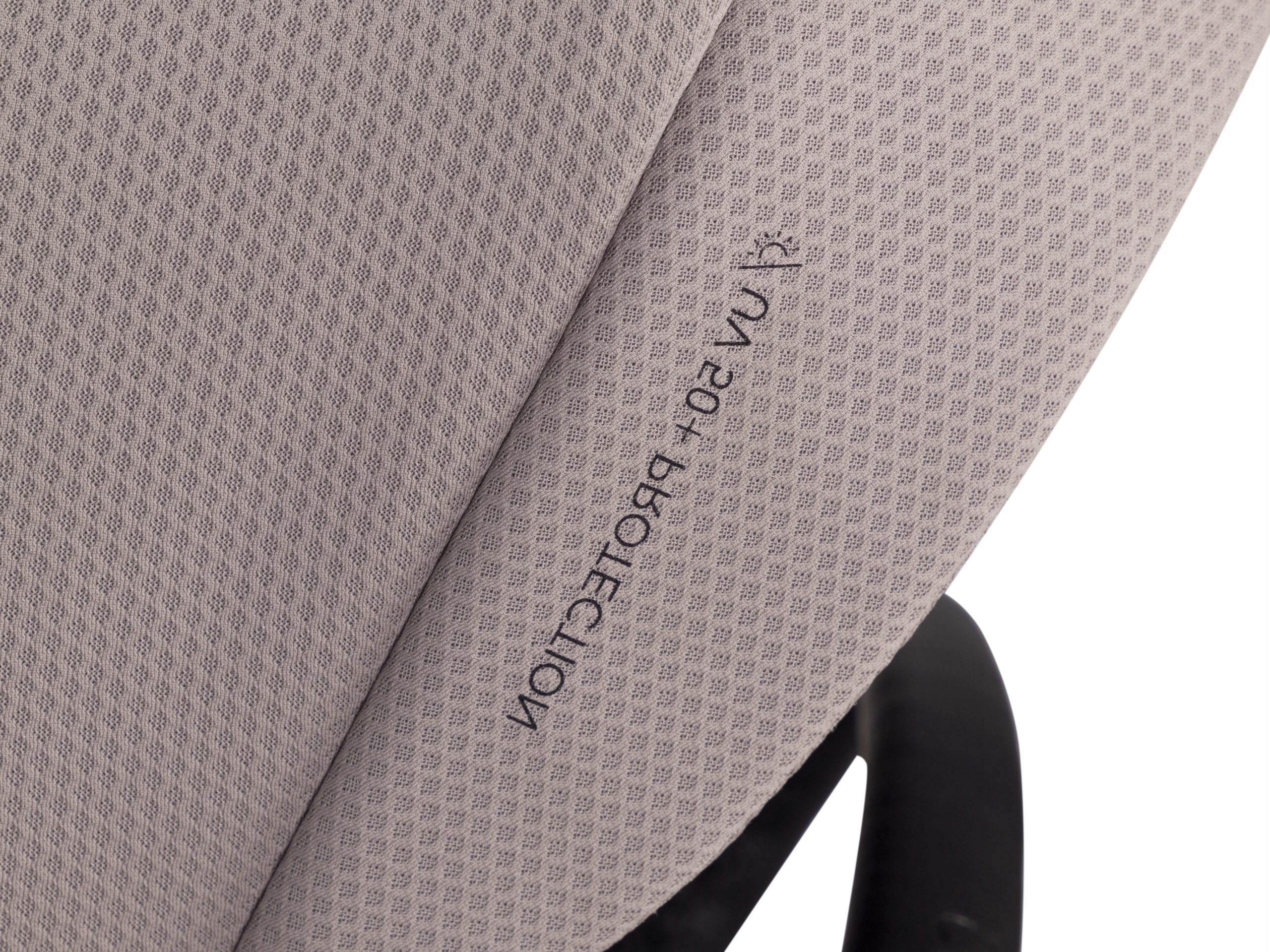 Сиденье коляски МОИ сертифицировано для детей от рождения до 22 кг. Имеет две мягкие вставки, которые можно снять, когда ребенок подрастет. Новинкой является использование противоскользящей ткани на поверхности сиденья, которая предотвращает скольжение ребенка. Это решение уже давно используется в детских переносках, но впервые оно было использовано в детской коляске. В ткани имеются силиконовые пузырьки, благодаря которым ребенок сидит в оптимальном положении, что снижает риск возникновения дефектов осанки в будущем. Сиденье можно установить в обоих направлениях, а коляску также можно сложить в обе стороны. Солнцезащитный козырек большой и имеет дополнительную запираемую секцию, которая защитит ребенка от низкого солнца. Не забыли дизайнеры и о вентиляции. Помимо типичных вентиляторов, расположенных в солнцезащитном козырьке, сиденье коляски МОИ имеет вентилируемую спинку.