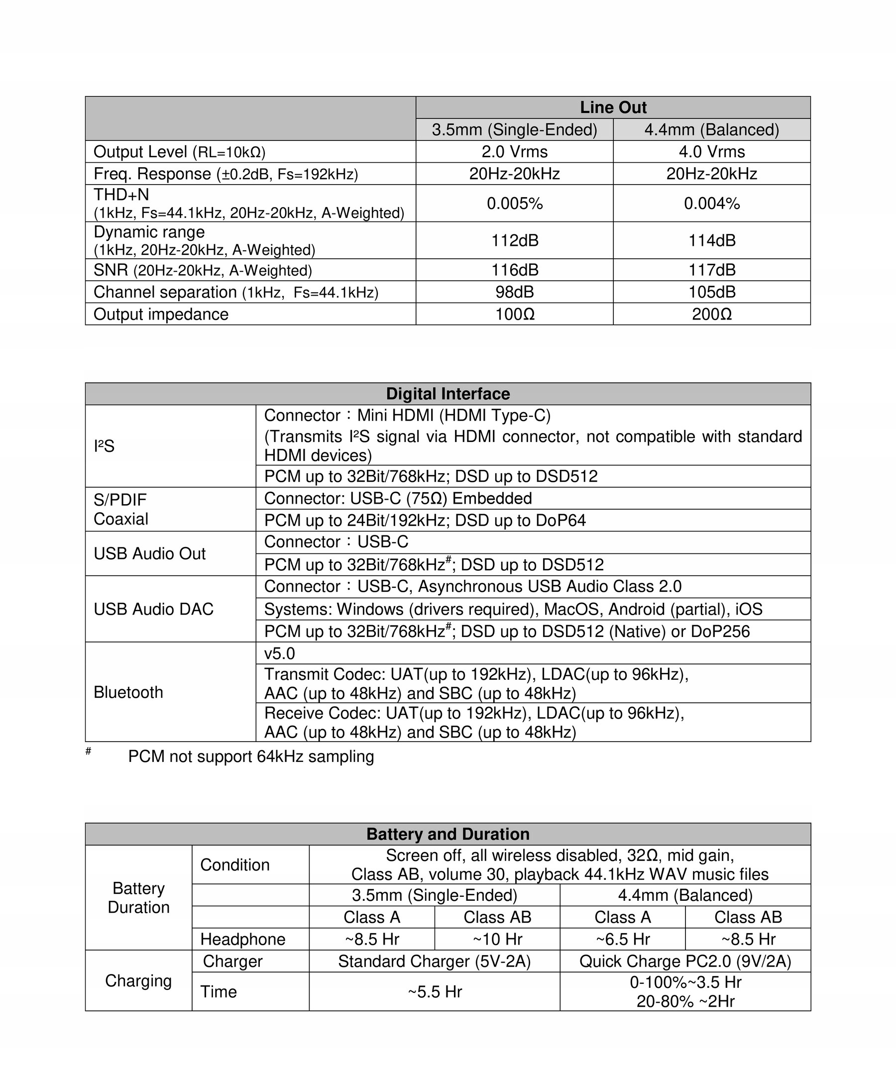 - Разделенные линейные выходы и выходы предусилителя. : несимметричный разъем 3,5 мм и балансный разъем 4,4 мм.