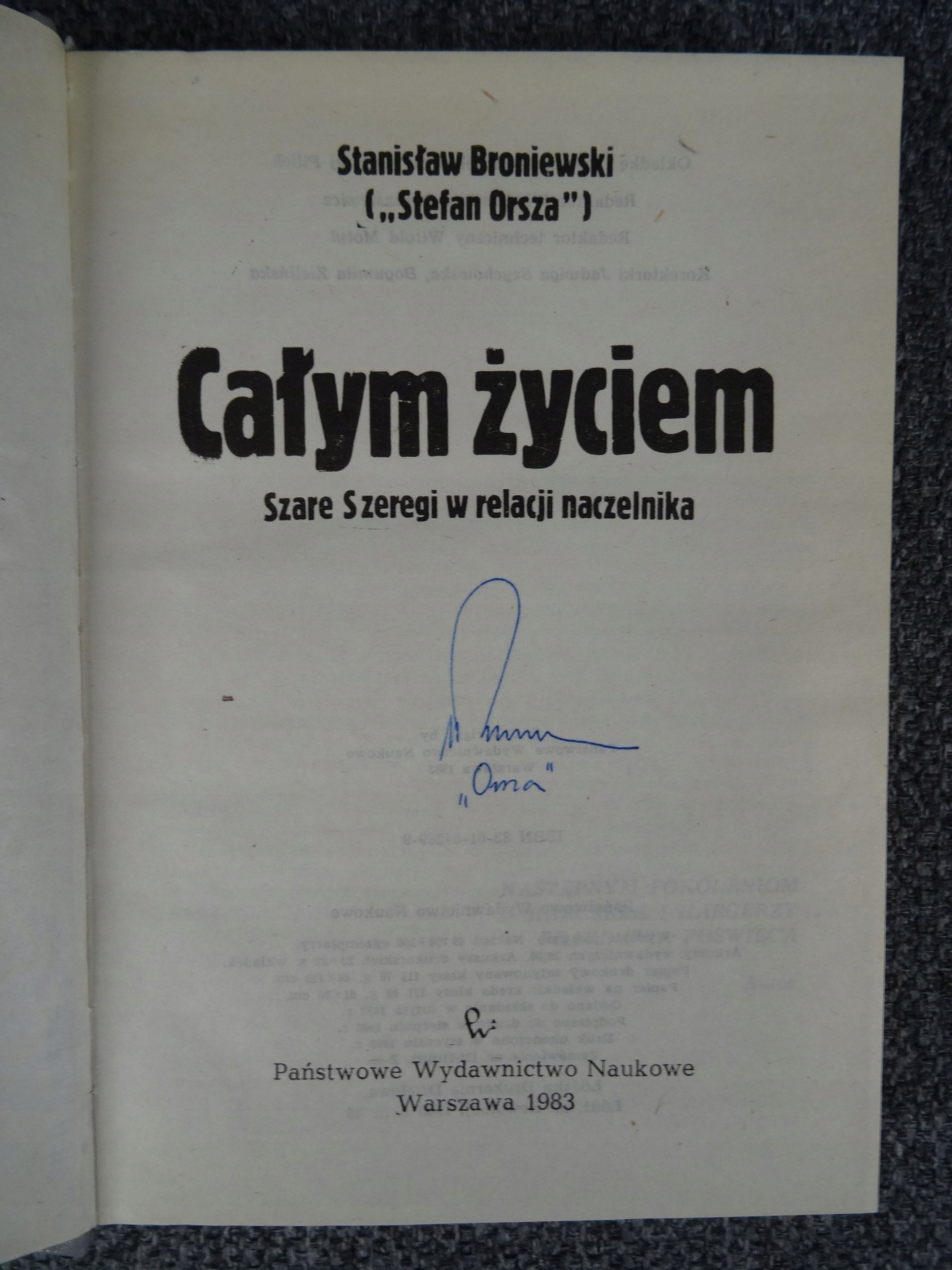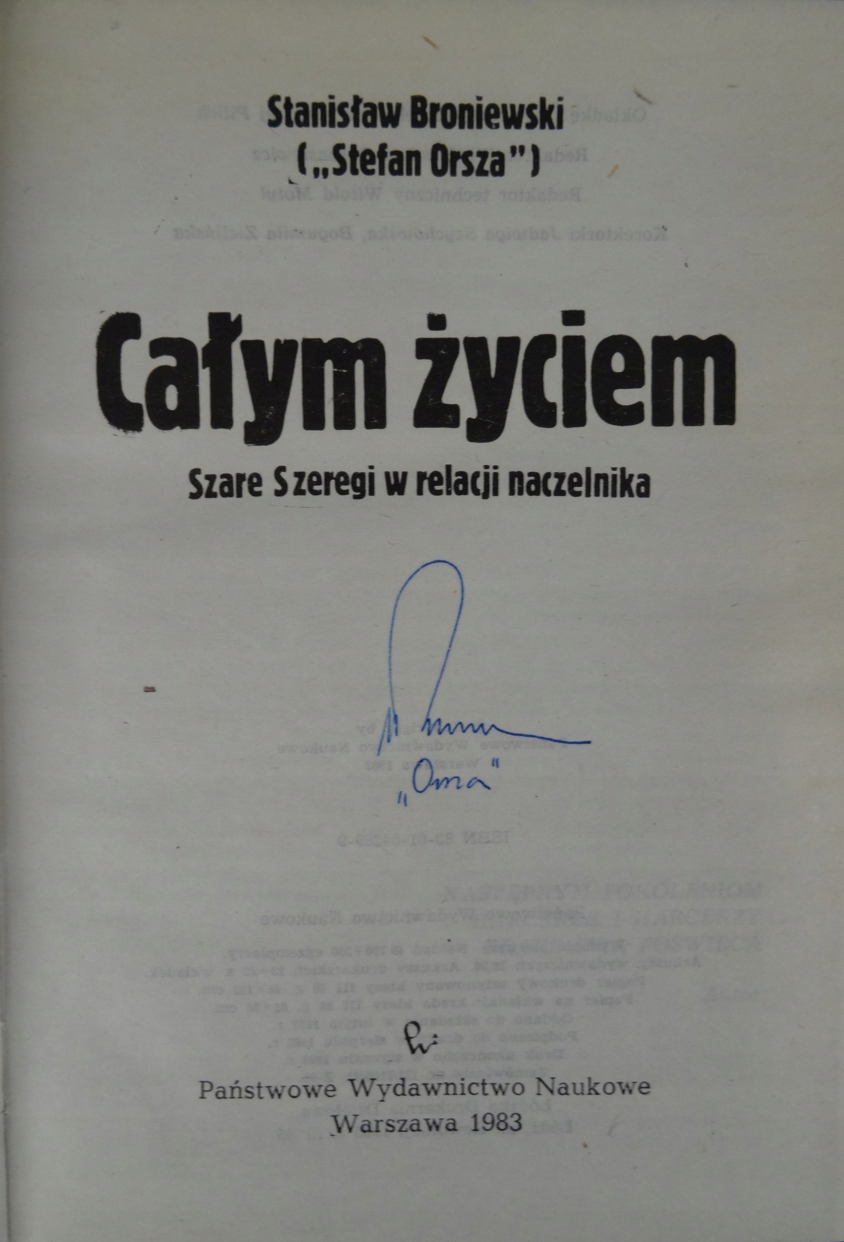 CAŁYM ŻYCIEM Stanisław Broniewski AUTOGRAF "Stefan Orsza"