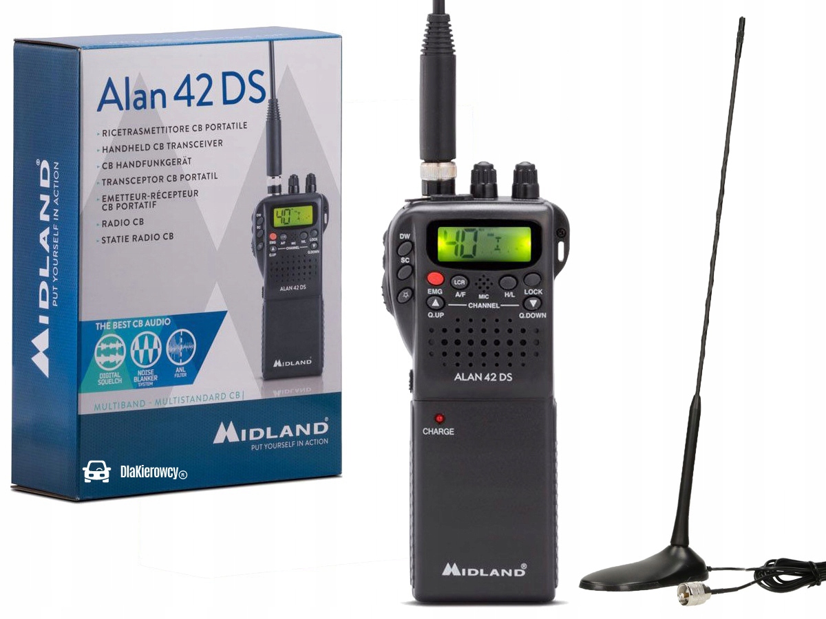 CB-радиостанция MIDLAND ALAN 42 SD Ręczniak + Антенна CB Радио с сильным магнитом без настройки LTC PASAT 44 см
