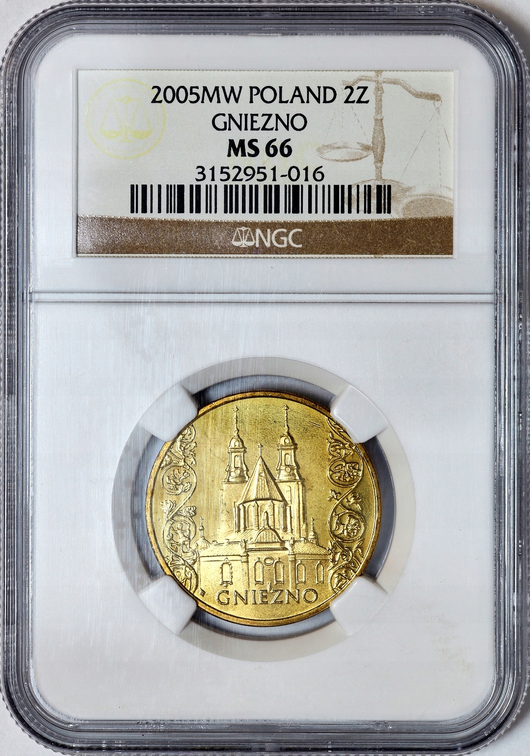 CC 2 злотых 2005 года Гнезно - NGC MS66