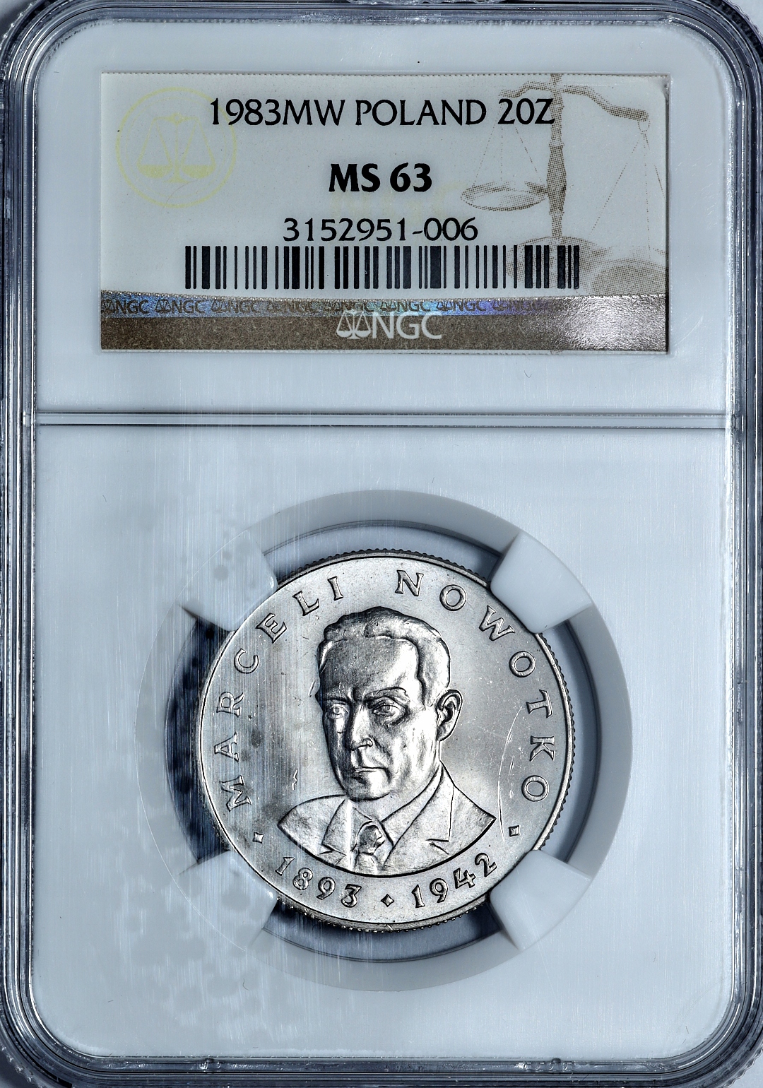 CC 20 Zlotys 1983 Marceli Nowotko - NGC MS63