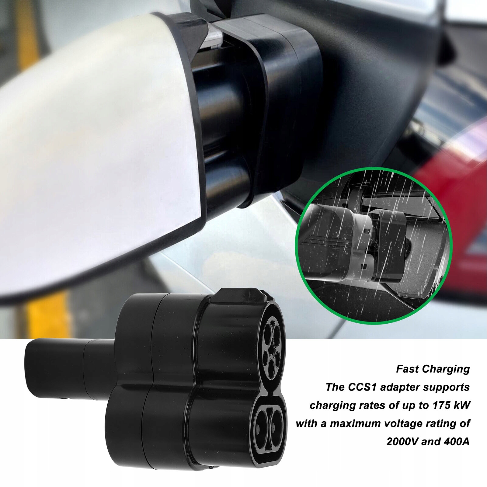 2. Быстрая зарядка: адаптер CCS1 будет снизить мощность до 175 кВт. Этот адаптер для адаптации с постоянным током имеет максимальное номинальное напряжение 2000 В и 400 A.