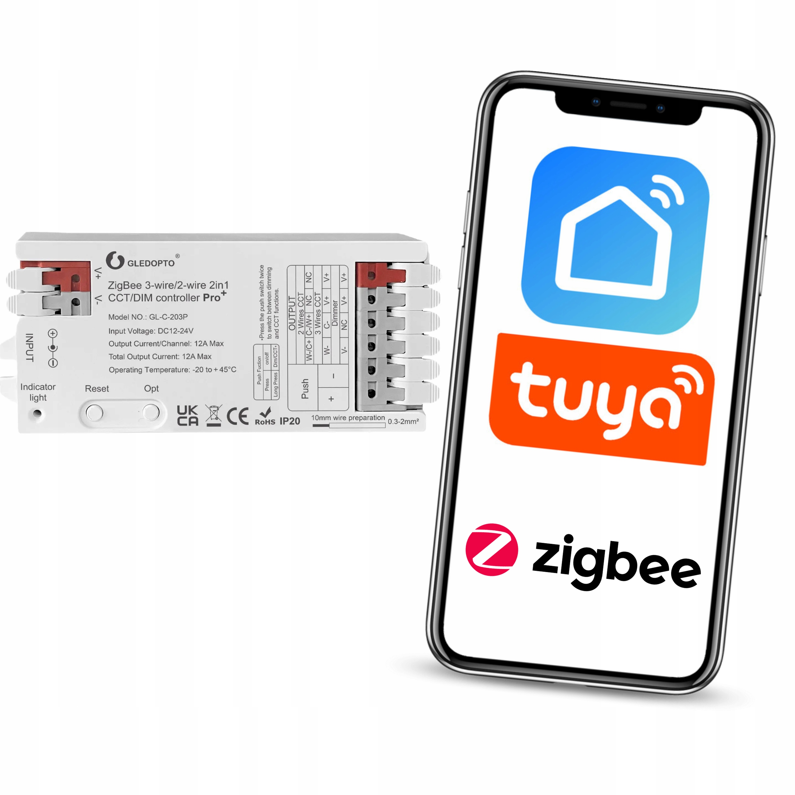 2 в 1 светодиодном контроллере GLEDOPT , который позволяет управлять светодиодными лентами и изменять цвет белого света. это совместимо с целями Zigbee tuya, hue и SmartThings . Вы также можете подключить физический переключатель. Устройство позволяет настроить яркость и цветовую температуру света. Максимальный выходной ток составляет 12 A, что позволяет использовать более длинные светодиодные ленты. Полем Создайте уникальную атмосферу в каждой комнате. >