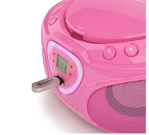 CD BOOMBOX FM-РАДИО СВЕТОДИОДНАЯ ПОДСВЕТКА ПОКАЗЫВАЕТ CD-ПЛЕЕР USB BT РОЗОВЫЙ