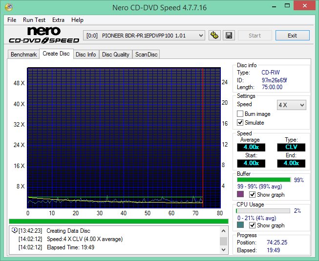 Использовался легендарный носитель CMC ATIP\MID: 97m26s65f, известный, среди прочего, по превосходным дискам Dysan CD-RW и Dysan CD-RW Audio.