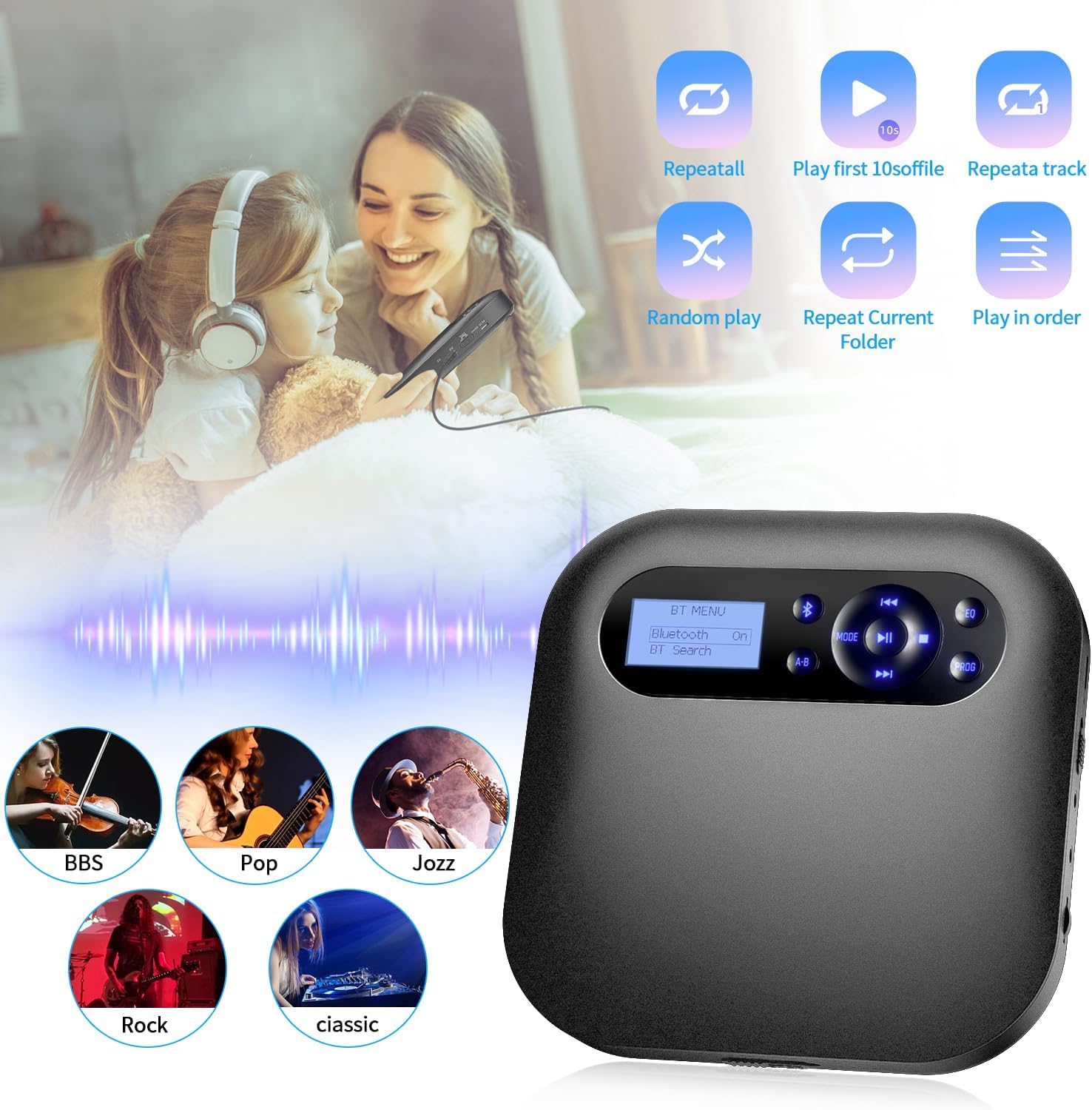 - Bluetooth 5.0 Передатчик: Этот CD -плеель Bluetooth может быть подключен к наушникам и динамикам. Наслаждайтесь музыкой беспроводной