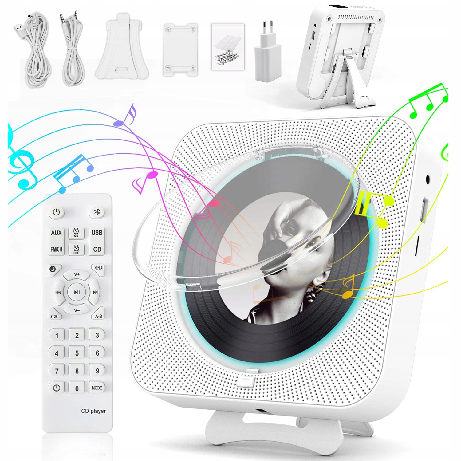 - CD-плеер Bluetooth поставляется с комплектом для настенного крепления и диском, который легко закрепить на стене, чтобы сэкономить место, что делает ваш дом более элегантным и художественным. а также с настольной подставкой, которую можно легко разместить на столе или столе.