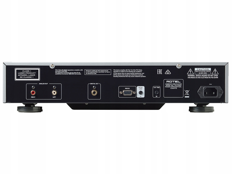 <р> Полезные функцииМодель CD14MKII оснащена аналоговым выходом (2x RCA) и цифровым выходом (коаксиальный). Таким образом, пользователь может использовать CD14MKII, например, в качестве CD-транспорта в сочетании с внешним цифро-аналоговым преобразователем. Набор разъемов дополнен триггерным входом 12 В, Rotel Link и разъемом RS-232, позволяющим работать с популярными системами управления.