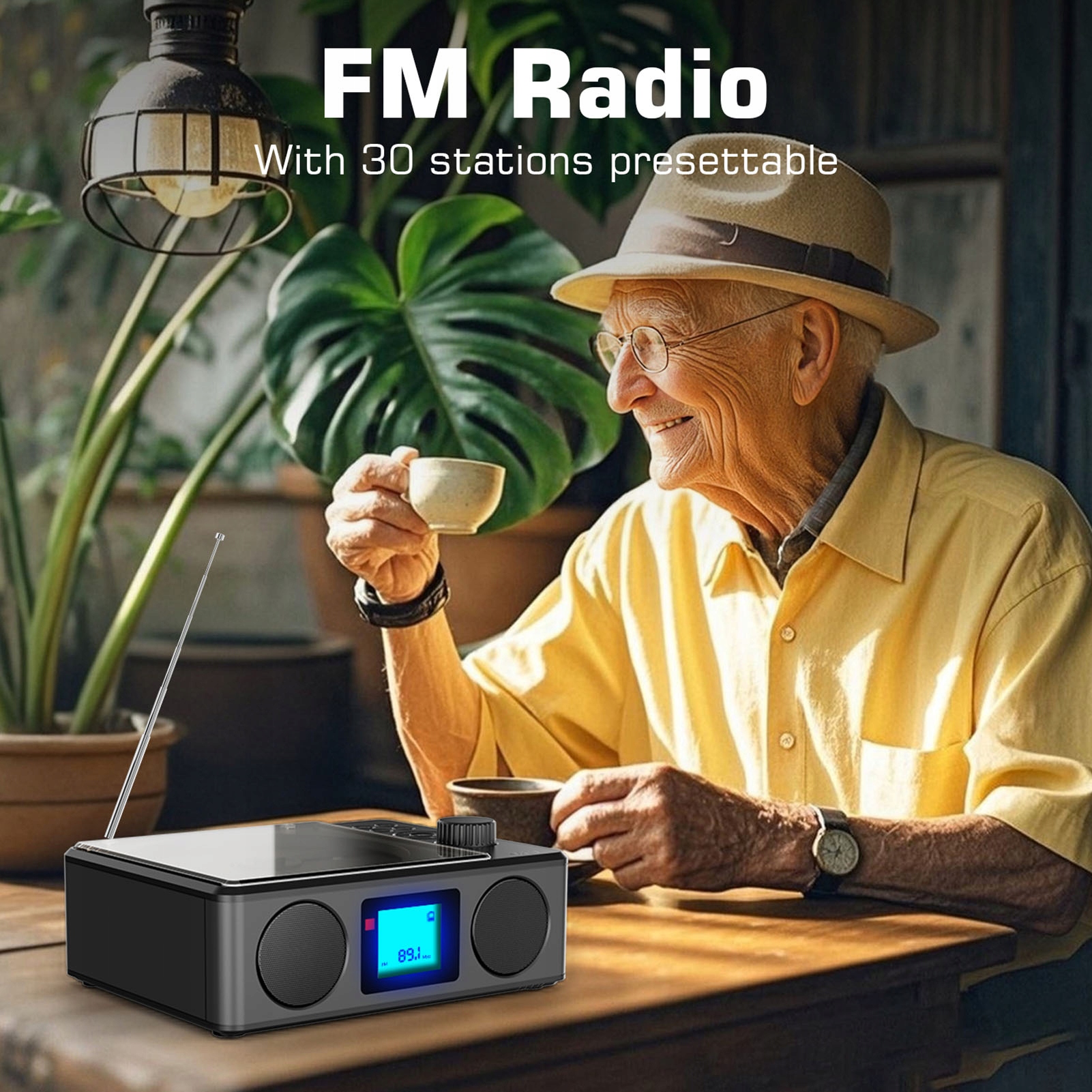 5. FM-радио: оснащено выдвижной антенной для четкого приема FM-сигналов, идеально подходит для домашнего использования. Яркий цифровой дисплей показывает радиочастоты, а 30 программируемых предустановок позволяют сохранять любимые станции.