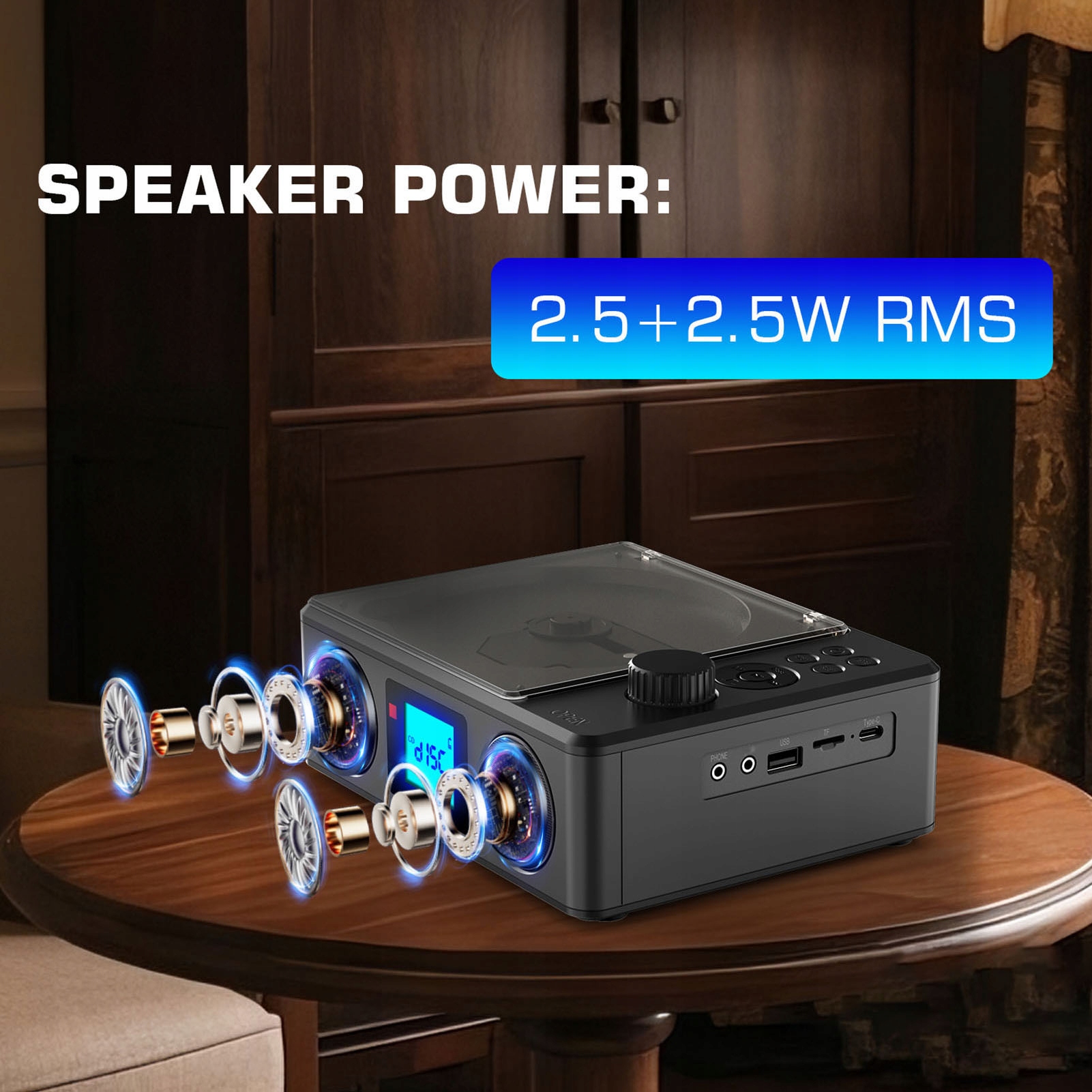 6. Разъем для наушников: подключите наушники с разъемом 3,5 мм к проигрывателю компакт-дисков. Наслаждайтесь чистым звуком независимо от того, слушаете ли вы старинный альбом или передаете аудио по беспроводной сети на этом проигрывателе компакт-дисков. Портативный дизайн сочетает в себе винтажный шарм и современное удобство. Он идеально подходит для дома, путешествий или в качестве подарка.