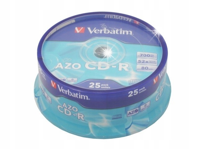 Коллективная упаковка, содержащая 25 дисков Verbatim CD-R 52x 700MB 25P CB Azo.