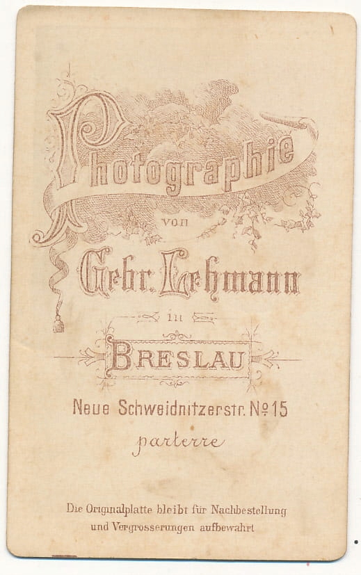 Оплачивая «CDV Gebruder Lehmann Вроцлав 1718» данный товар из каталога «Архивная и коммерческая фотография» вы можете быть уверены, что после оформления заказа, доставки в Украину, вы получите именно то, что заказывали, в оговоренные сроки и европейского качества.