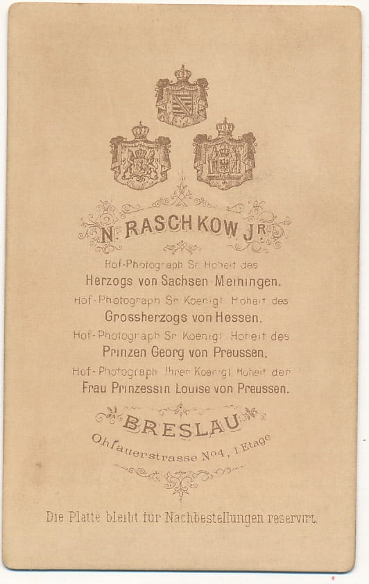 Заказывая «CDV N. Raschkow Вроцлав 1722» данный товар из каталога «Архивная и коммерческая фотография», вы можете получить дополнительную скидку 4%, если произведете 100% предоплату. Размер скидки вы можете увидеть сразу при оформлении заказа на сайте. Внимание!!! Скидка распространяется только при заказе через сайт.