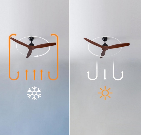 - Лето/зима: этот вентилятор имеет обратную систему вращения двигателя, чтобы обеспечить функцию лета/зимы. Повернув движение часов к лопатам, летом вы можете насладиться приятным ветерком, а в противоположном направлении вентилятор будет перемещать теплый воздух с потолка на пол, чтобы завершить систему отопления зимой.