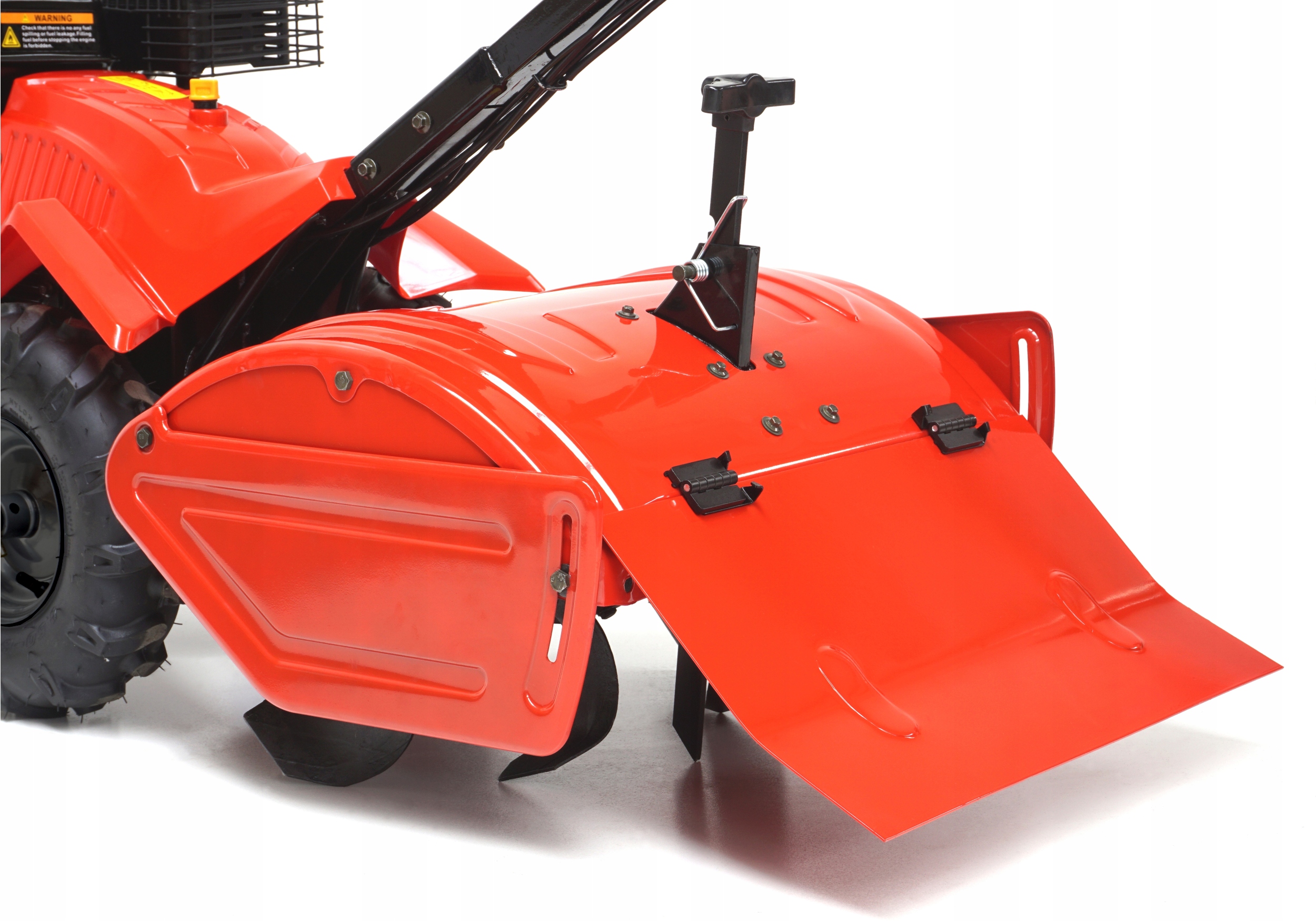 Колесный привод прекрасно поглощает усилия, передаваемые от рабочих ножей, снижает усилие во время работы и позволяет тщательно разрыхлить почву после первого рабочего прохода.