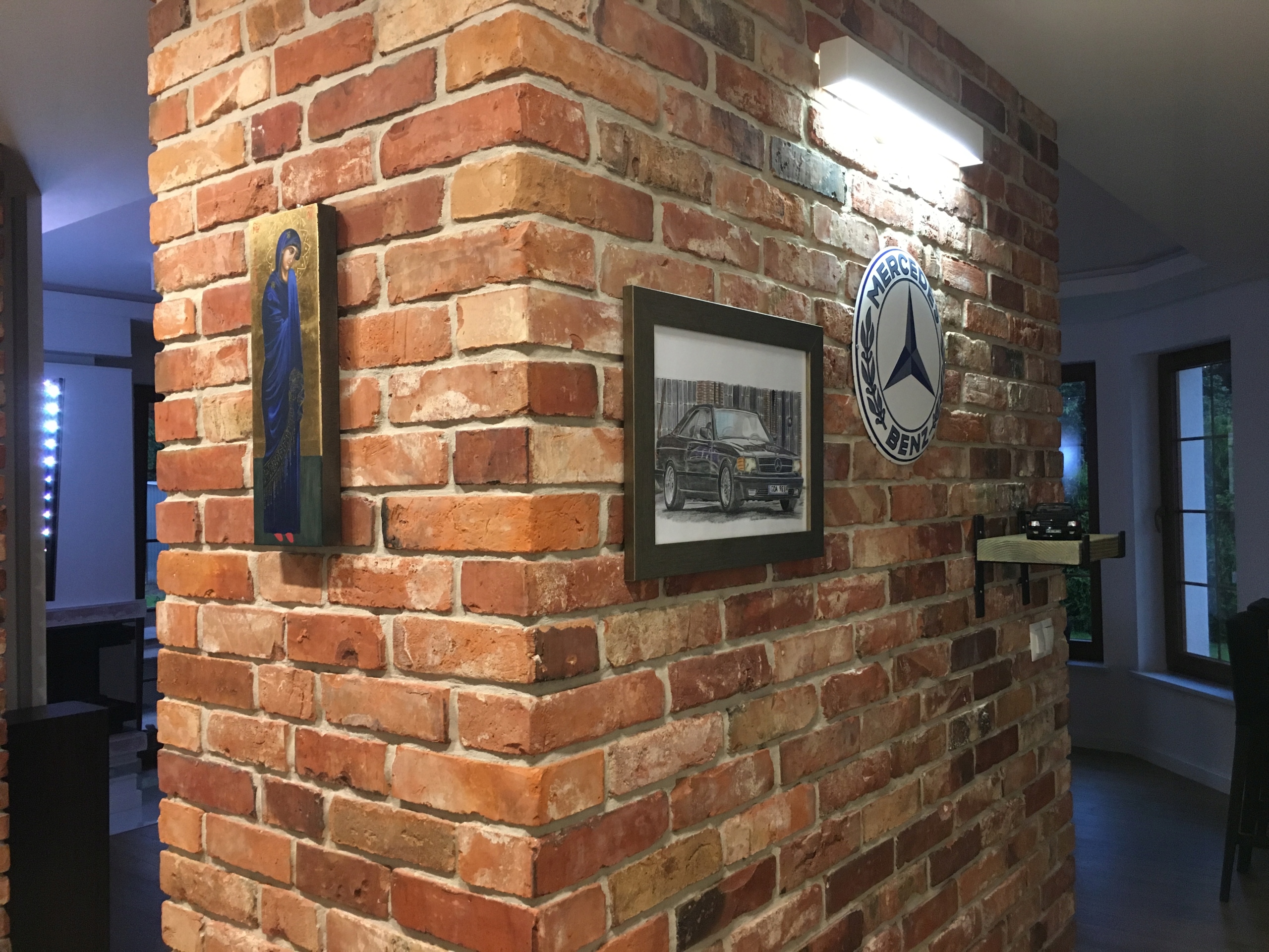Мы режем плитку только с лицевой стороны старого кирпича, поэтому она не требует ручной обработки и выглядит просто красиво.