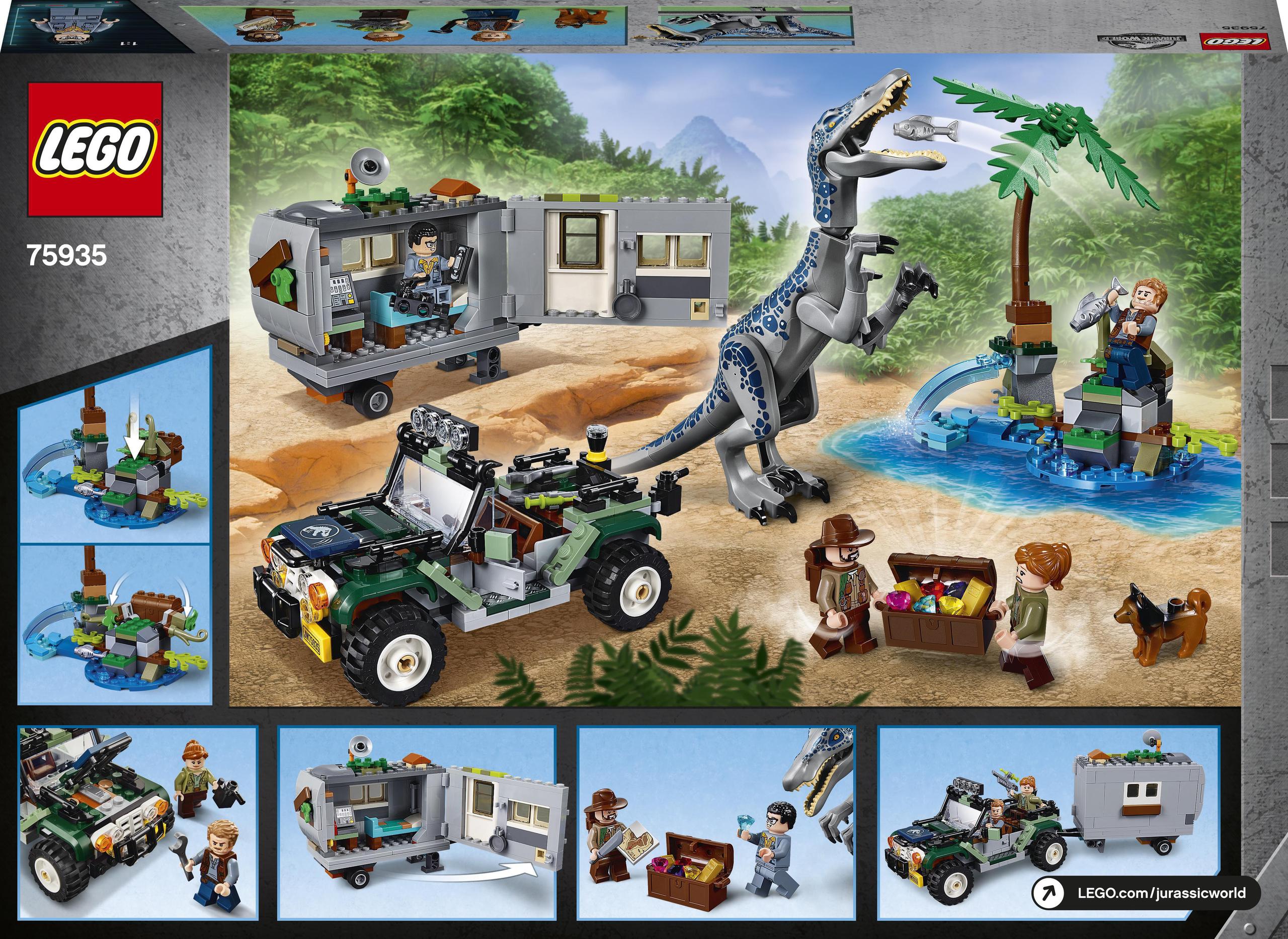 Дети получат массу удовольствия, присоединившись к Оуэну Грейди и Клэр Диринг в погоне за злодеями в джунглях с набором LEGO Jurassic World (75935: Встреча с бариониксом: Охота за сокровищами). Этот захватывающий игровой набор с динозаврами включает в себя внедорожник, вмещающий две минифигурки, прицепное устройство с детально проработанным салоном и сборную антенну на крыше. В комплект также входит сборный ландшафт джунглей и скрытый открывающийся сундук с сокровищами. В набор также входит подвижная фигурка Барионикса и 4 минифигурки с крутым оружием и аксессуарами для творческой игры.