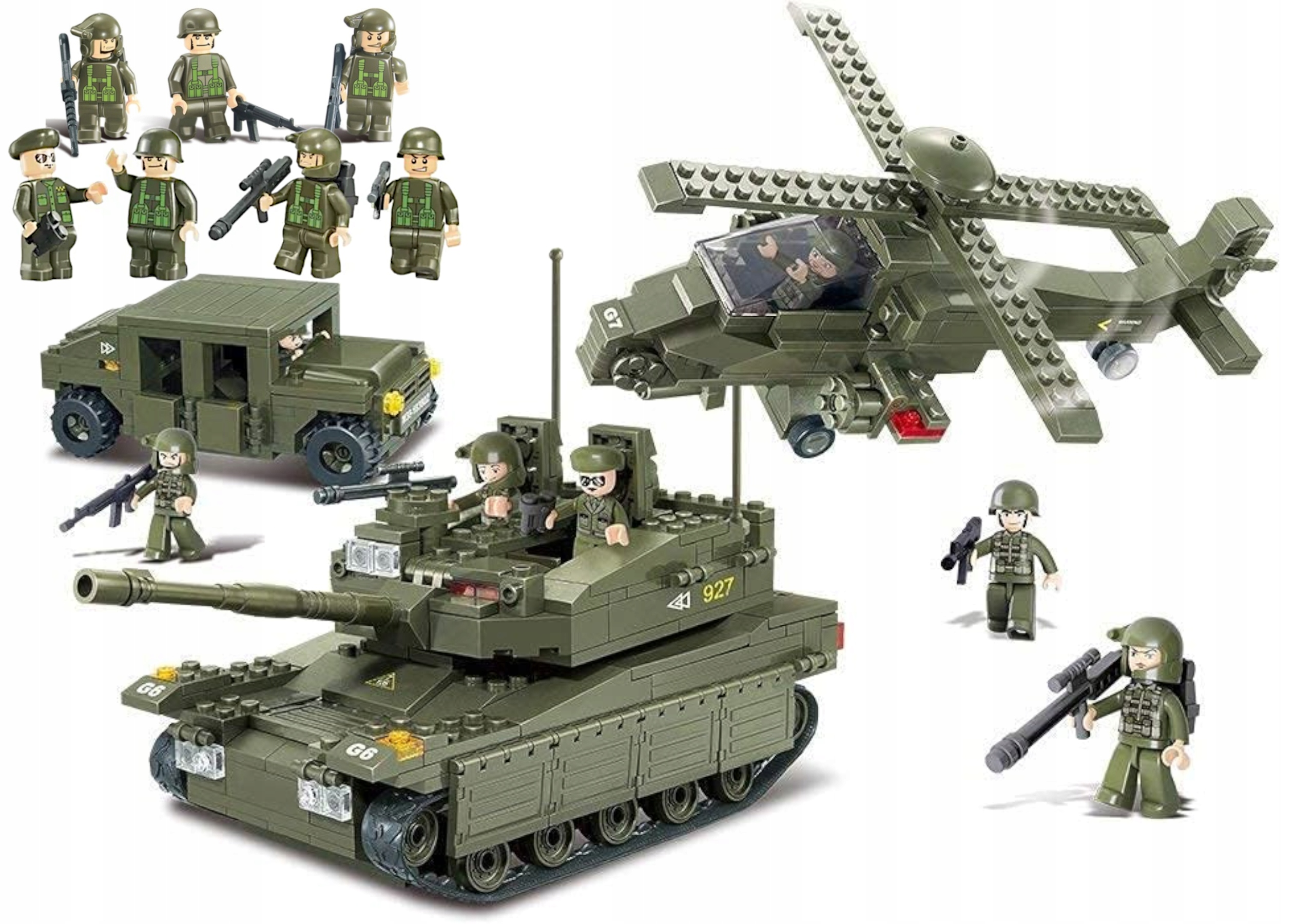 Цеглинки танк MERKAVA + ГЕЛІКОПТЕР + ДЖИП ХАММЕР + армія + 2 LEGO ЗБРОЯ