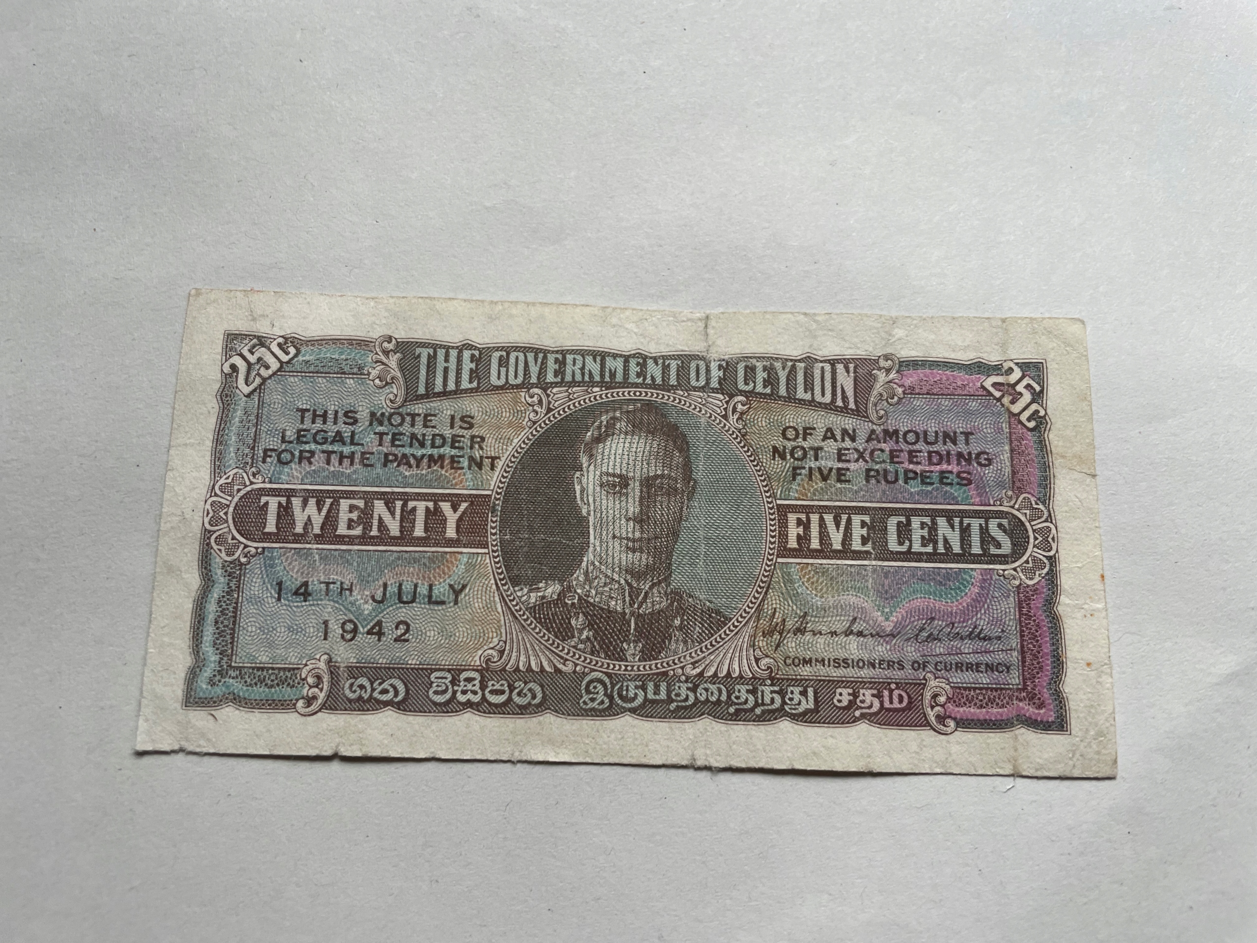 Цейлон – 25 центов – 1942 г.