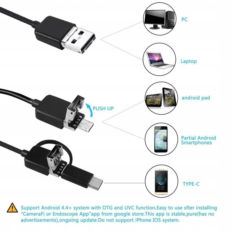 Эндоскоп CEL-TEC AI55-это новая инспекционная камера 3IN1, которую можно использовать с мобильными устройствами с системой Android, оснащенной разъемом MicroUSB или USB-C, а также с ПК с классическим компьютером USB-A. Просто установите приложение/программу, а затем.