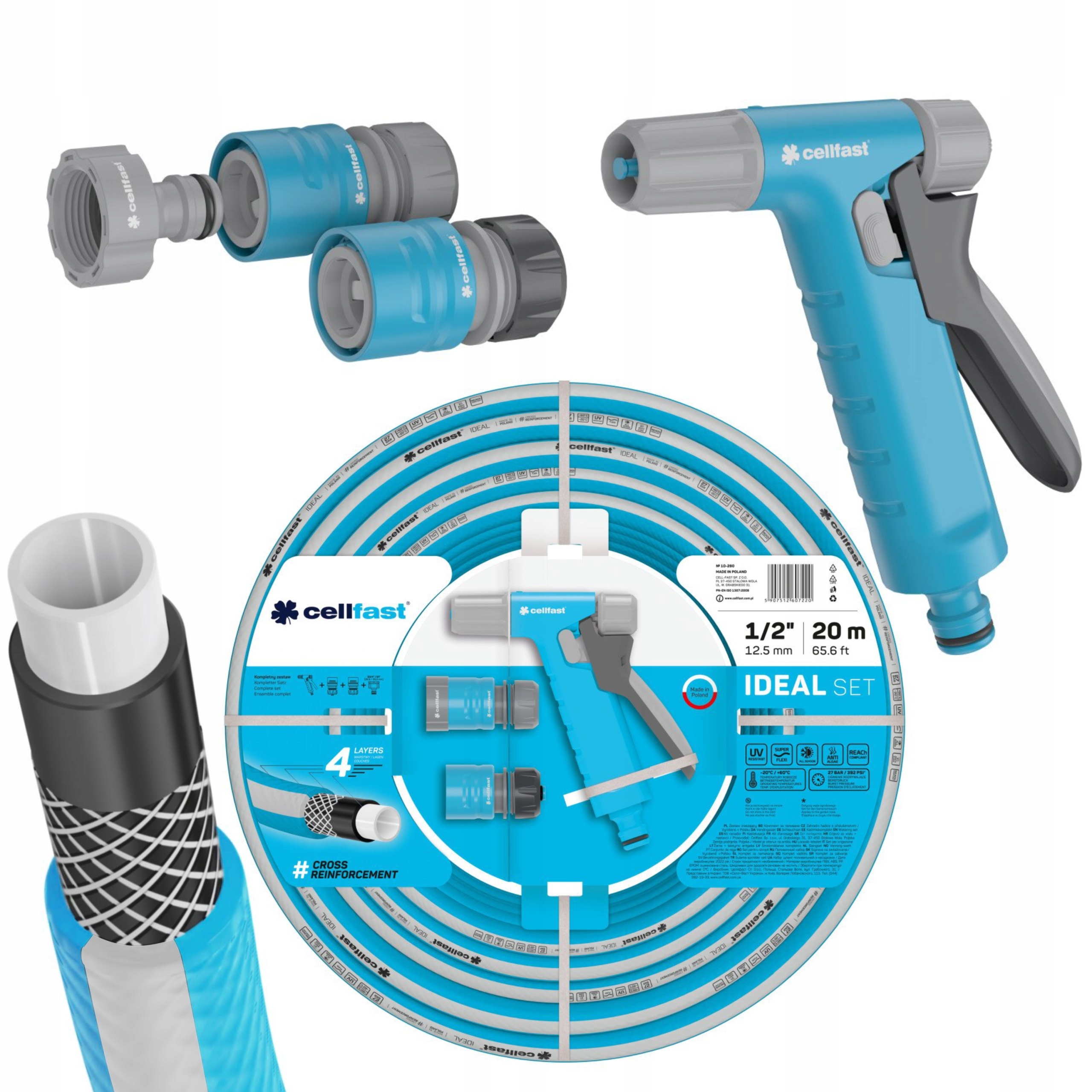 САДОВЫЙ ШЛАНГ CELLFAST 20М ИДЕАЛЬНЫЙ 1/2 ДЮЙМА + SPINNER HYDRON PISTOLIS POLISH