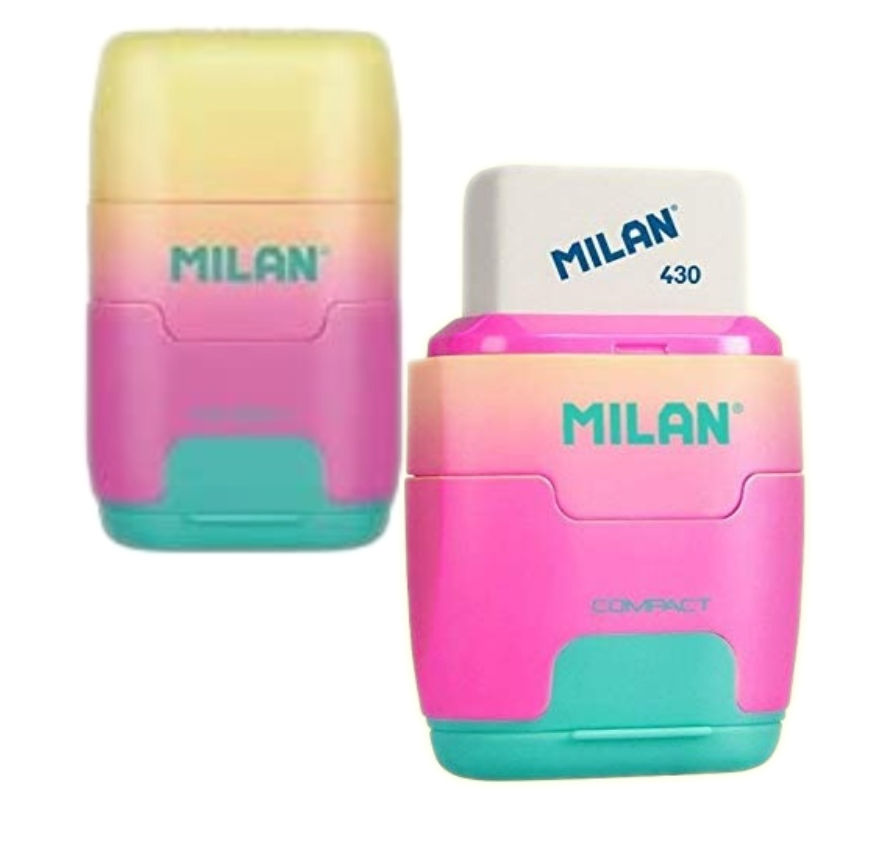 Супер комбинация упругости и точилки в одном. С другой стороны, мягкий синтетический ластик и в середине контейнера для резки лезвий из углерода -стали, благодаря тому, что они идеально подходят для всех типов карандашей. Клинок от отключения от температурного корпуса. Идеально подходит для школьного использования