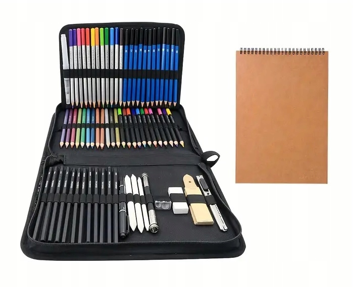КАРАНДАШИ, КАРАНДАШИ, НАБОР ИЗ 75 ЭЛЕМЕНТОВ, ПРОФЕССИОНАЛЬНЫЙ АЛЬБОМ ДЛЯ ЭСКИЗОВ, ХУДОЖЕСТВЕННЫЙ ЧЕХОЛ