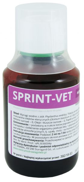 Назначать 2 мл на 1 л питьевой воды (20 голубям) или 4 мл на 1 кг еды за 2 дня до соревновательного вылета и в день возвращения. В оставшийся период применять 3 дня в неделю.