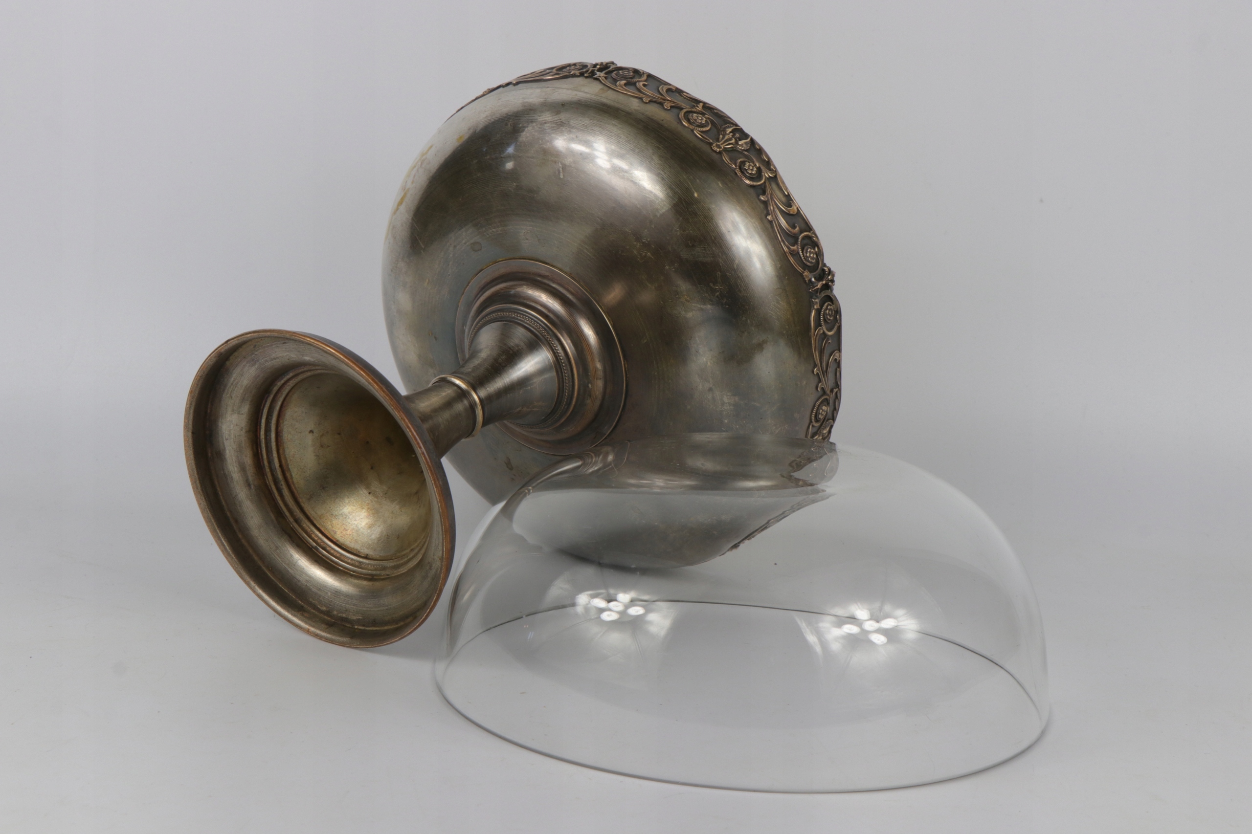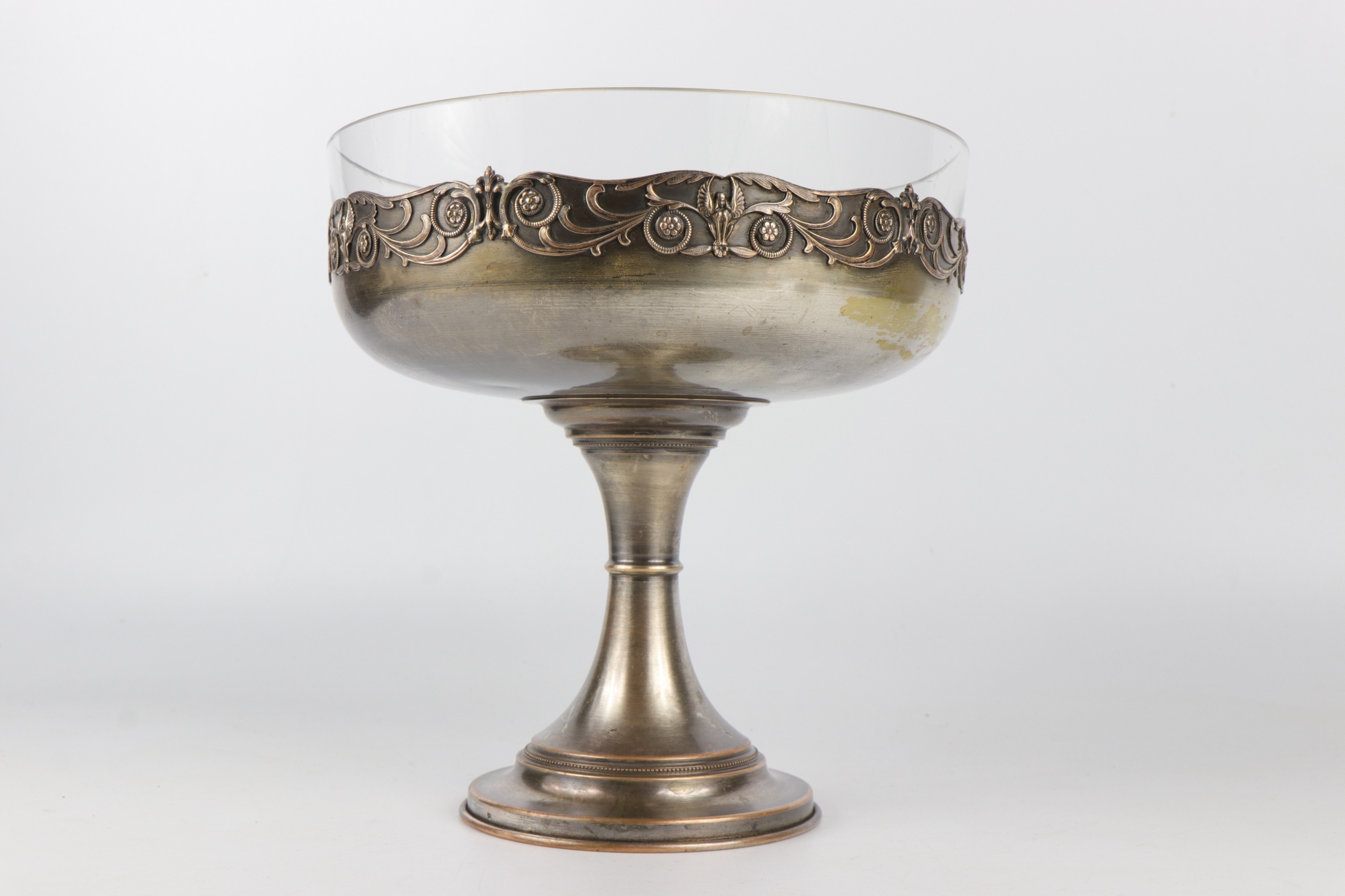 Состояние на ваше усмотрение можете увидеть на фотографиях. Стеклянная вставка в очень хорошем состоянии, без повреждений. Серебро сохранилось хорошо, на пластине нет трещин, посеребрение внутри потерто в результате реакции. В целом хорошее состояние. Самая полезная тарелка.