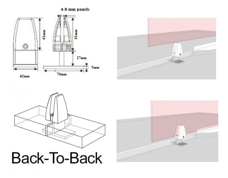 Крепление к перегородке из стекла, оргстекла, акрила, дерева или даже металла.