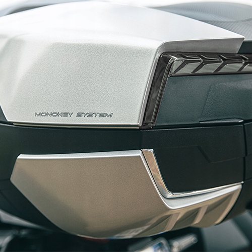 - Просторный центральный багажник, который также был переработан с точки зрения дизайна, его оптимизированный вес 5,4 кг и большую силу. Спутник без напряжения. Друг, The Maxia 5 Trunk может вместить два модульных шлема больших размеров.
