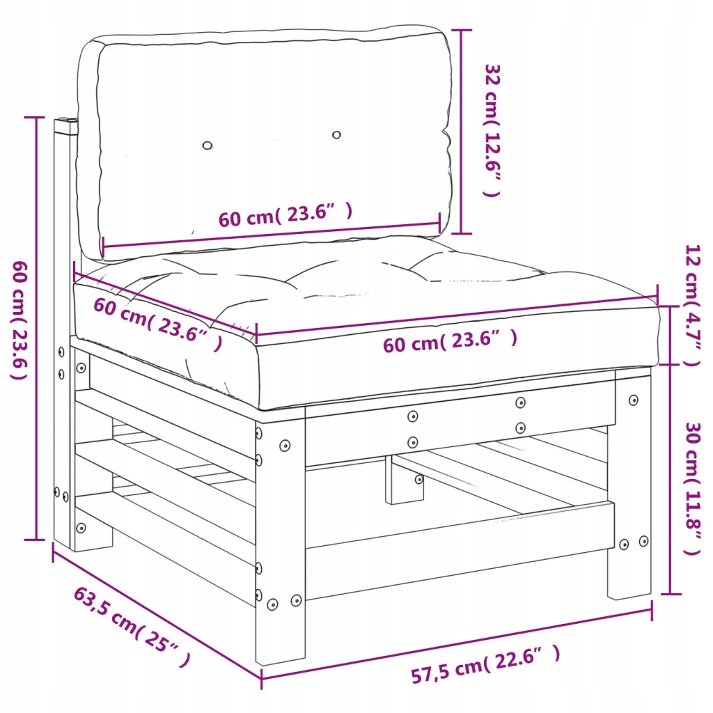 Центральный деревянный сад диван 57,5x63,5x60 см, пропитанная сосна древесина