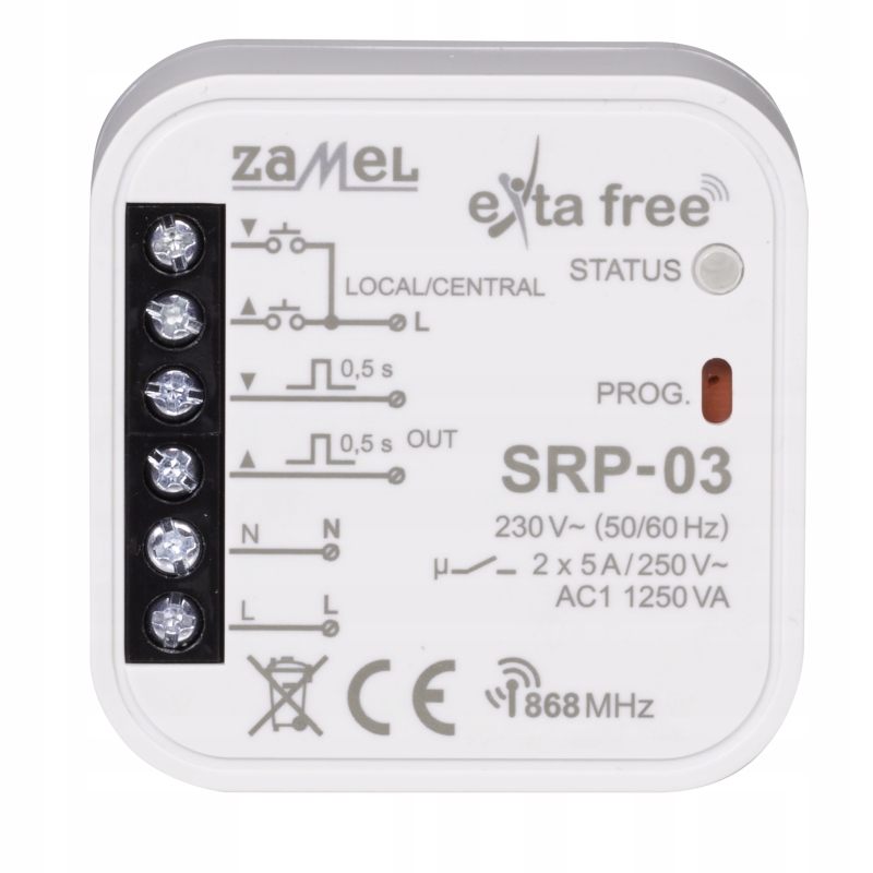 Контроллер роллет СРП-03 предназначен для выполнения функции центрального управления приводами оконных роллет. Устройство формирует импульсы центрального управления (полное открытие или закрытие роллеты или группы роллет, длительность импульса 0,5 с). SRP-03 может использоваться как элемент беспроводного (передатчики системы EXTA FREE) или проводного (жалюзи) централизованного управления, что позволяет интегрировать проводные контроллеры роллет (SRM-10, SRP-01). или устройства других производителей) с помощью беспроводной системы управления EXTA FREE.