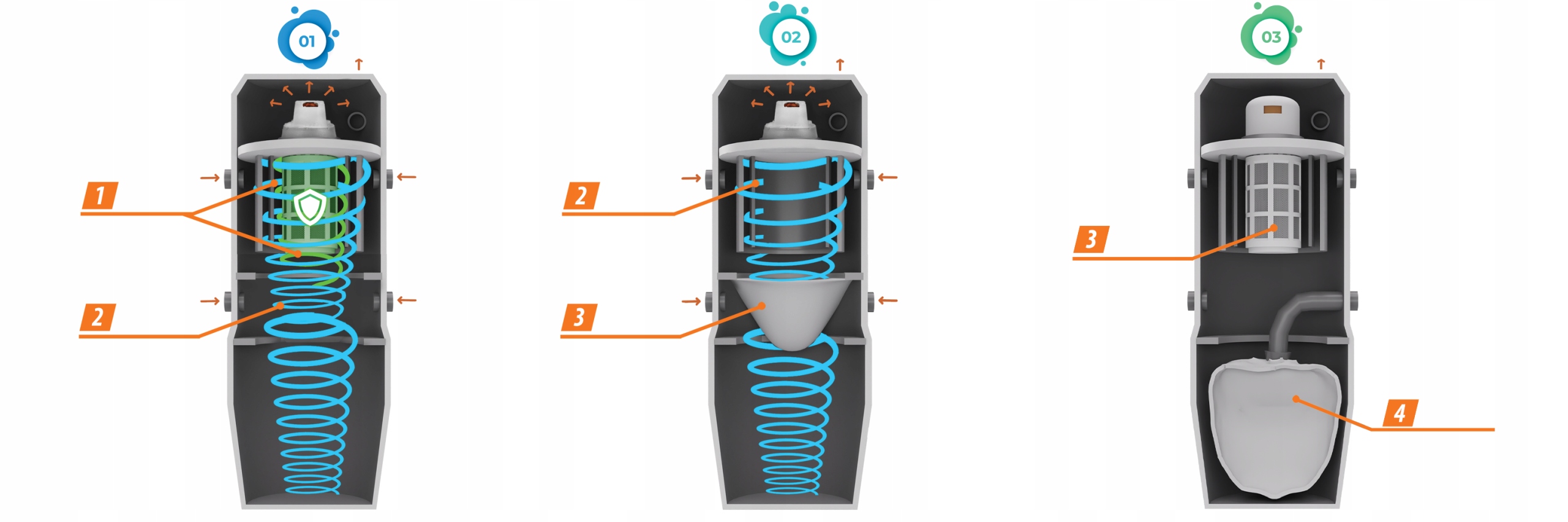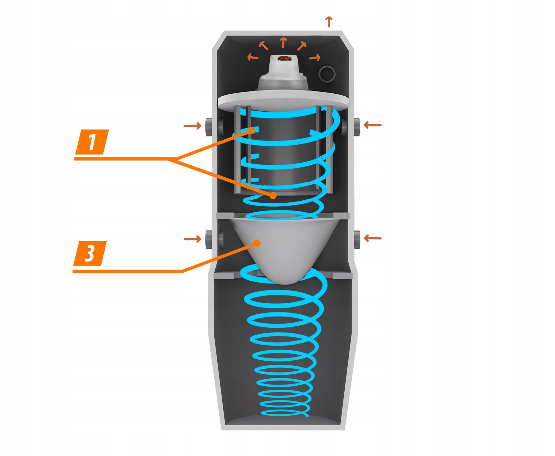 Двойная циклонная фильтрация — это та же система, что и в первой версии.