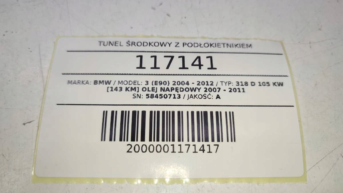 Аукционный субъект: Центральный туннель с брмрестом BMW E90 E91 58450713
