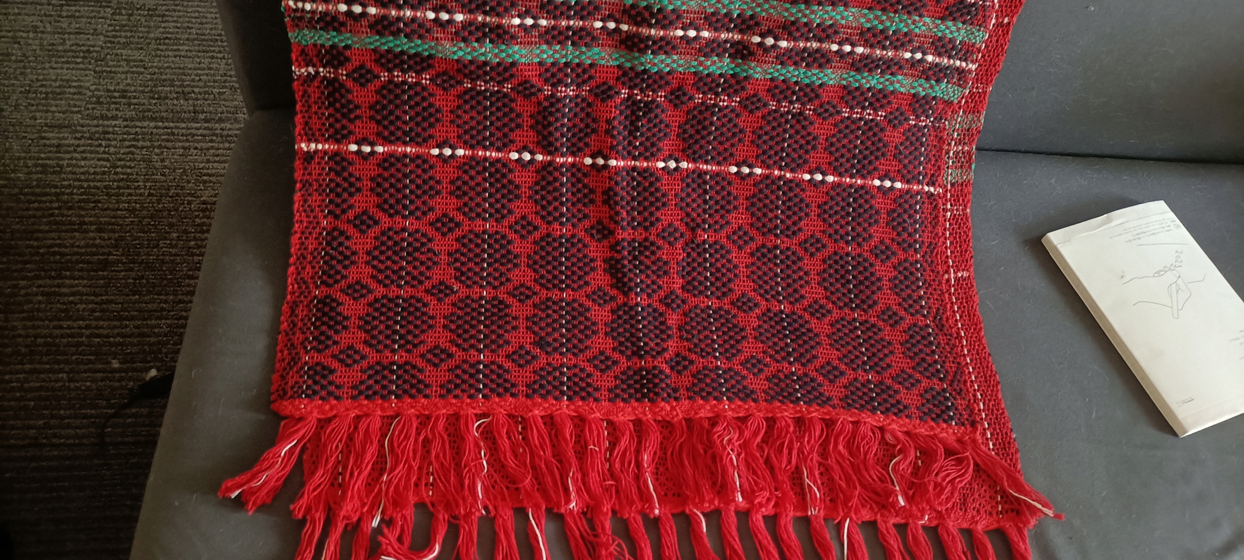 Cepelia PRL красивий старий вовняний столик з геометричним малюнком 56,5x135