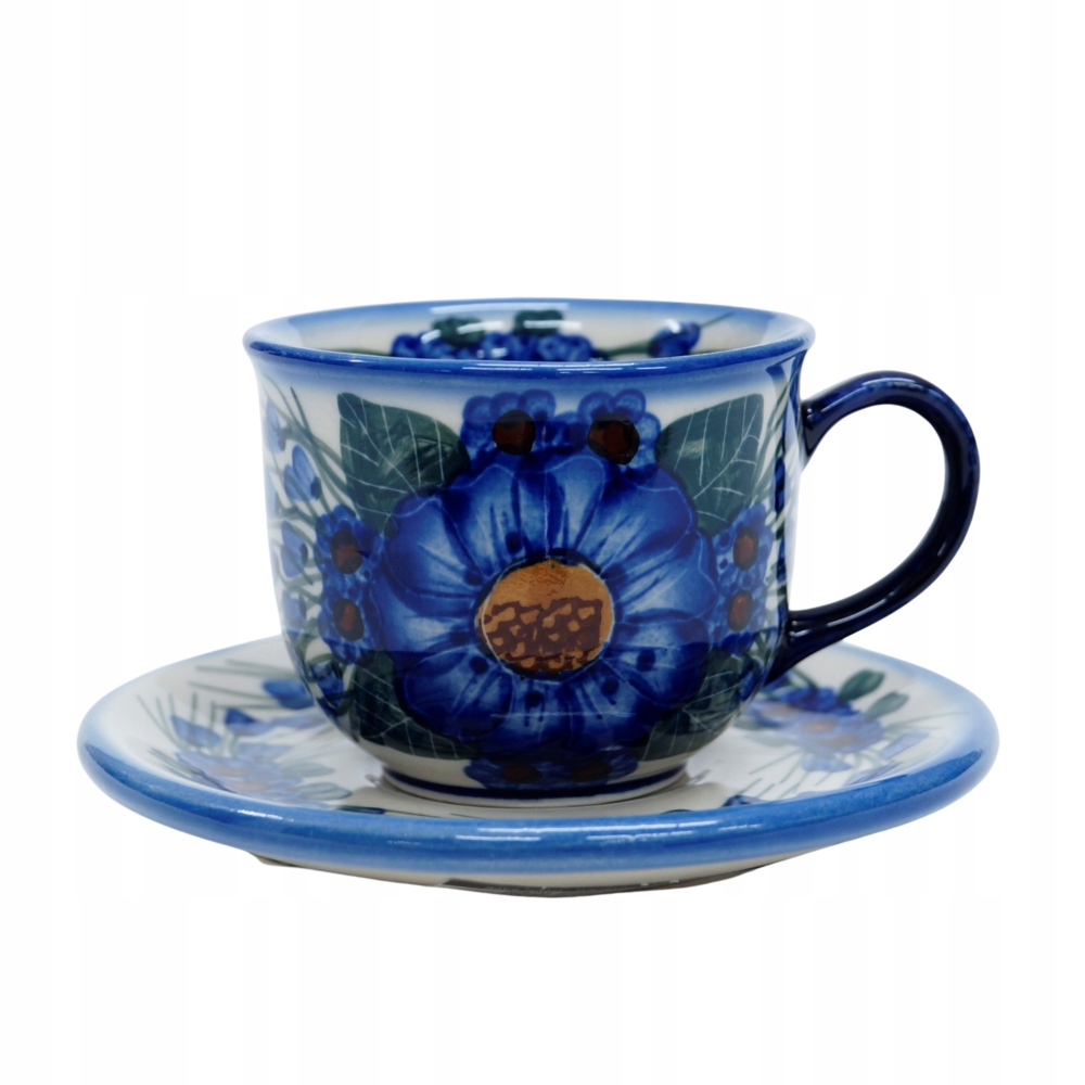 Керамическая чашка и блюдце Болеславец - Andy Ręczna Ceramika Bolesławiec