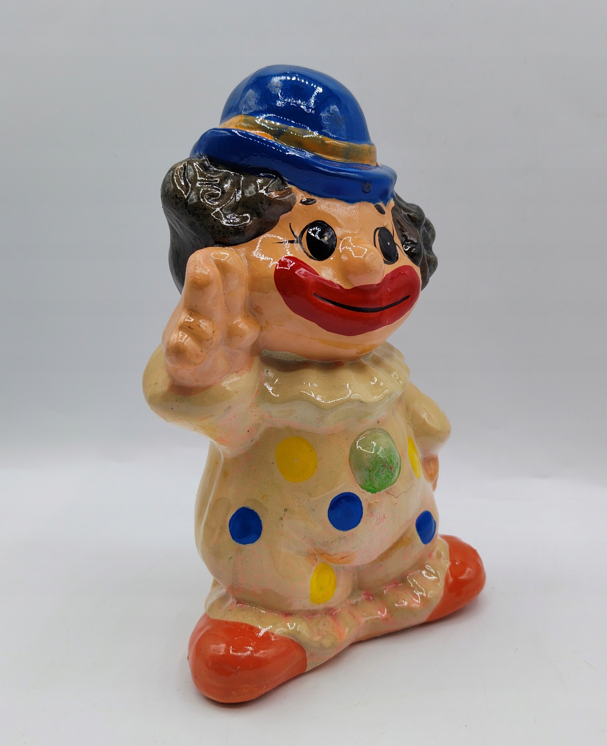 ceramiczny klaun, skarbonka, obiecuje ze nie odda