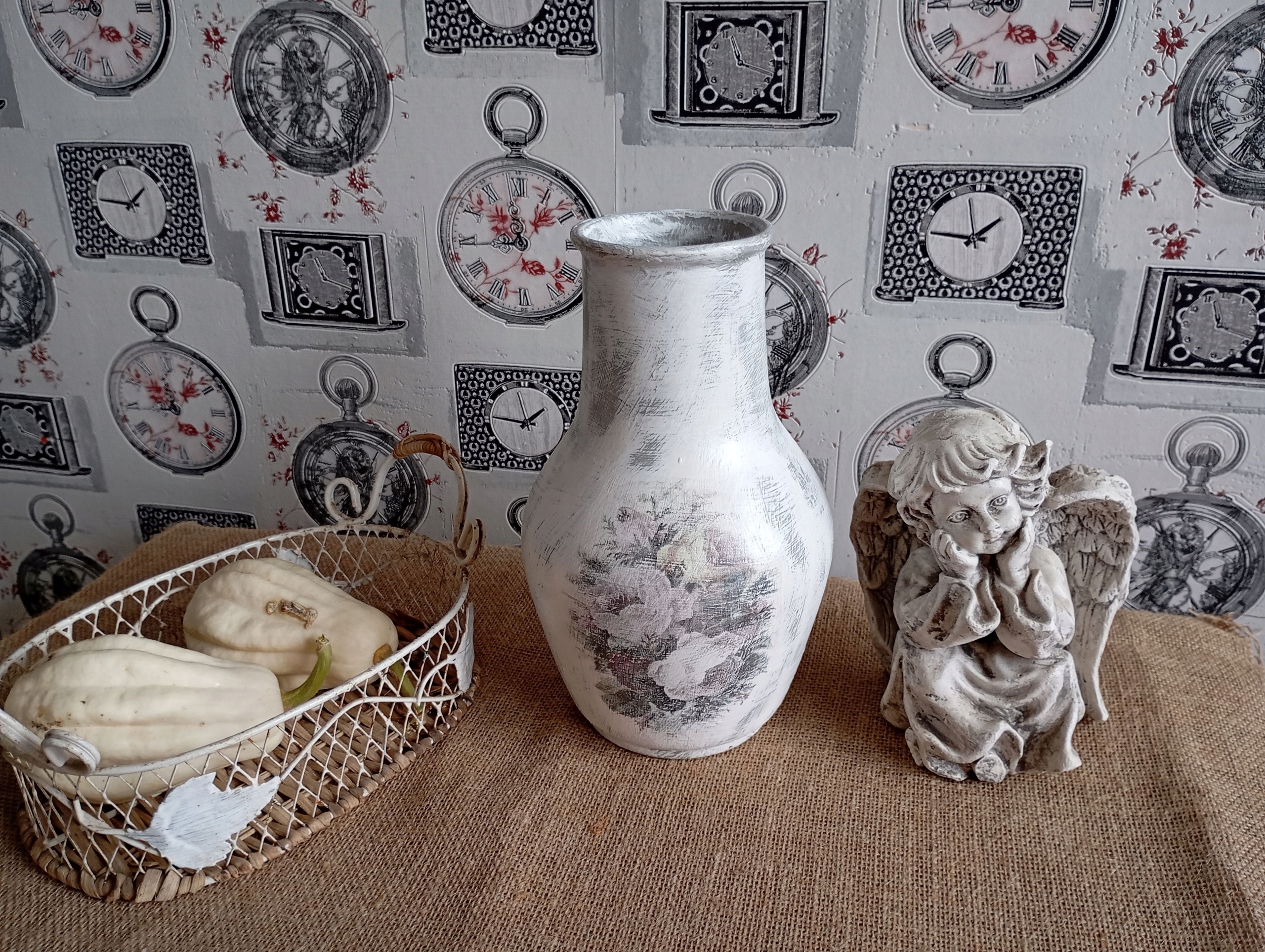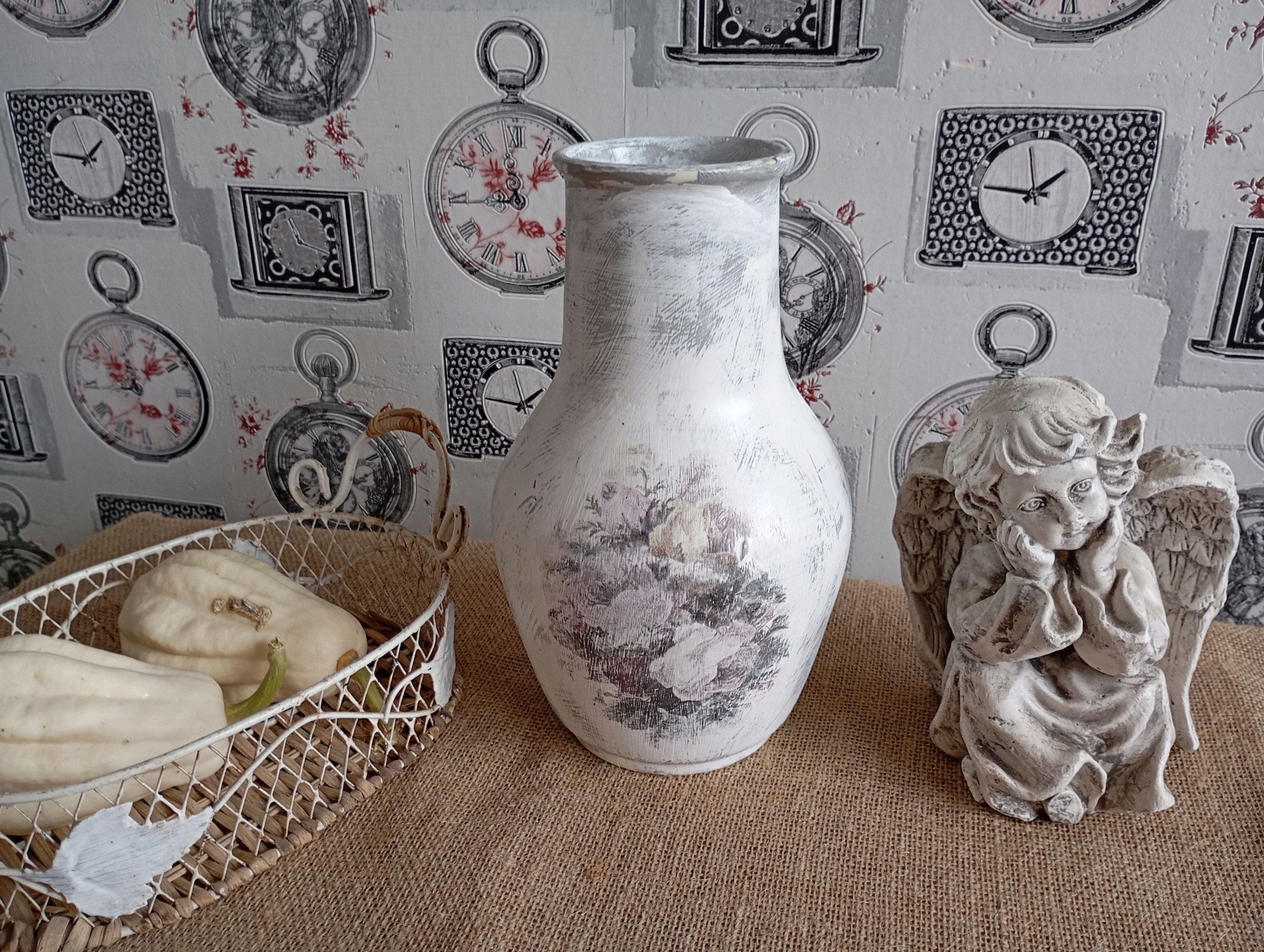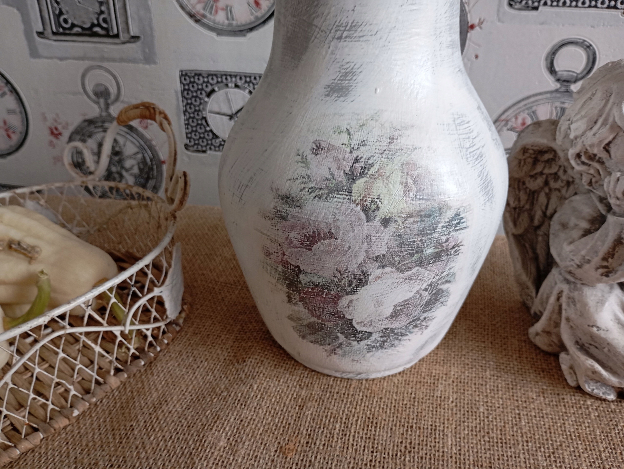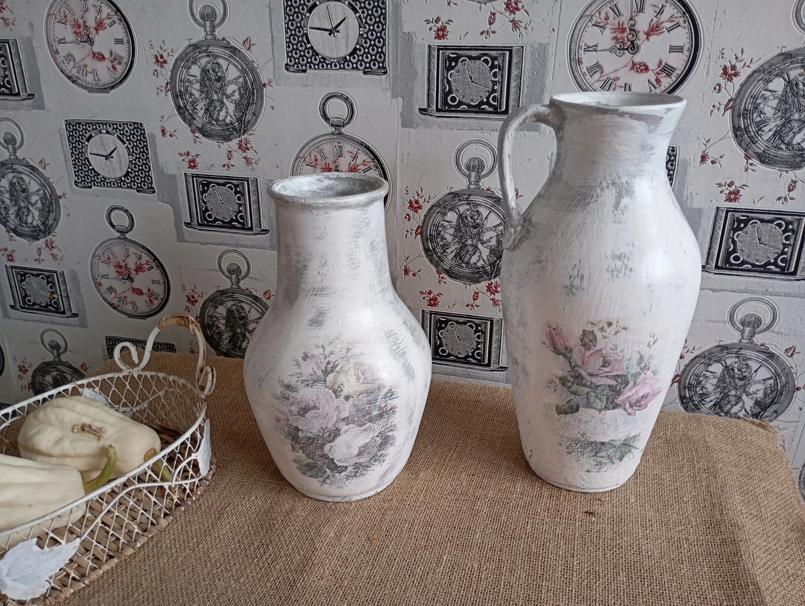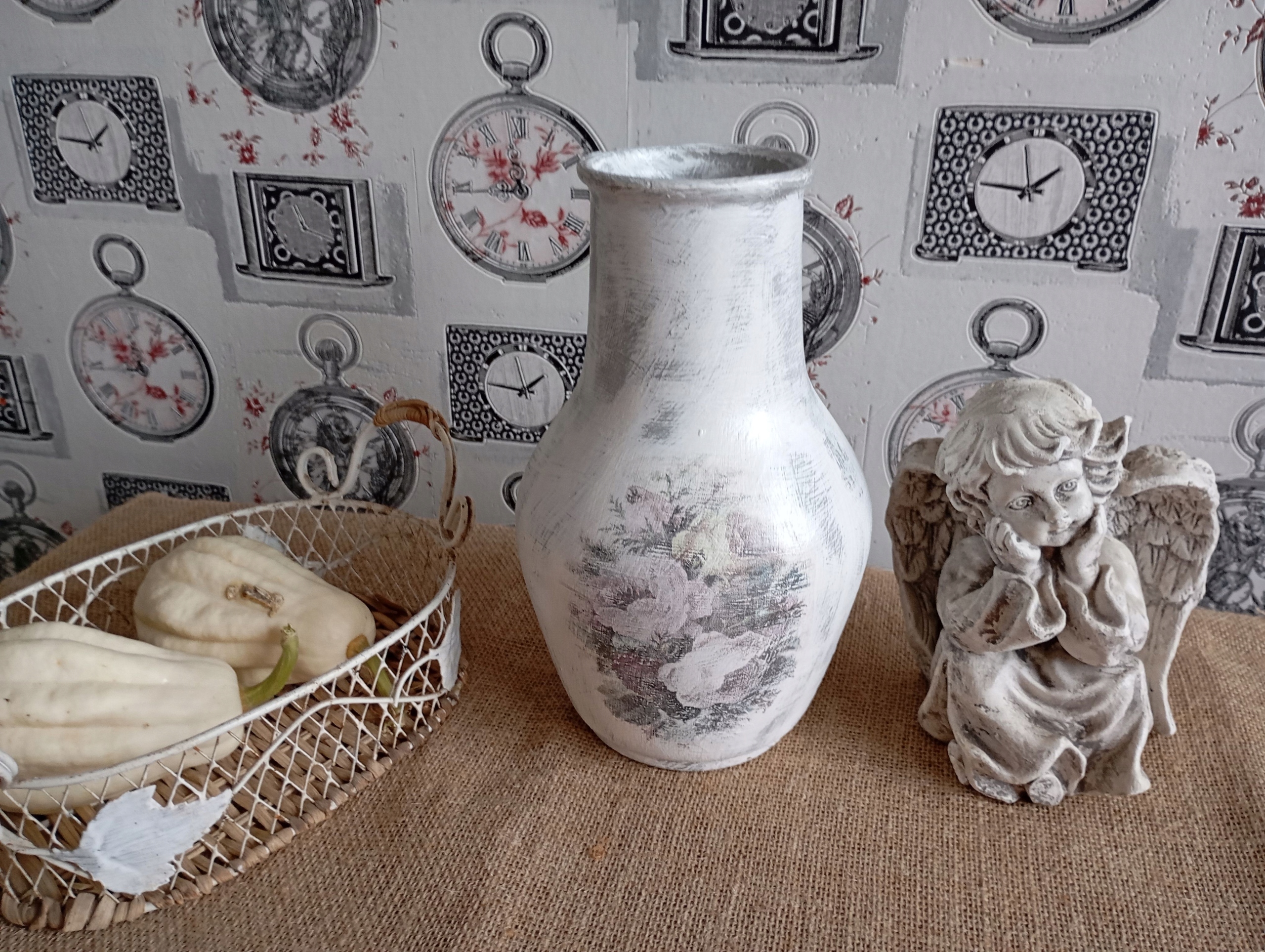 CERAMICZNY MALOWANY DZBANEK WAZON SHABBY CHIC